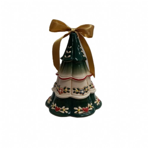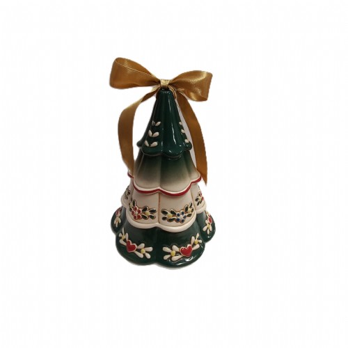 Con i suoi 19 cm di altezza, questa statuetta in Kergrès® cattura il cuore con il suo design Shabby: la ricca finitura in verde lucido fa da sfondo ai decori in rilievo, mentre il grande fiocco oro in cima simboleggia il dono e la gioia della condivisione.