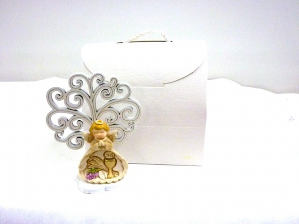 ALBERO BIANCO IN LEGNO CON BASE ARRICCHITA DA ANGELO IN RESINA CON CALICE
