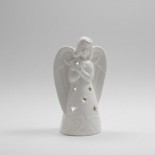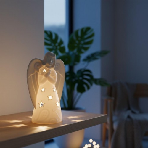 Protezione e Luce: Angelo Luminoso in Porcellana Stellata