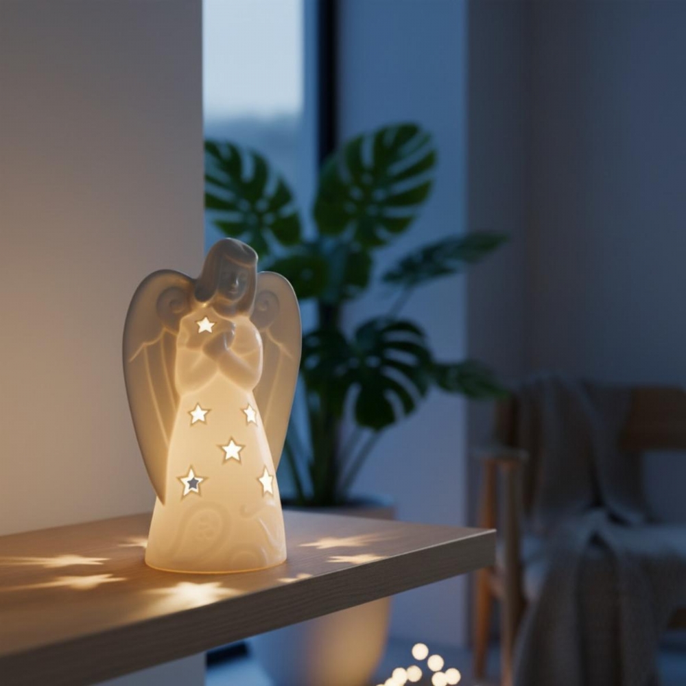 Un'opera d'arte raffinata che unisce protezione e splendore. Questo Angelo Custode Luminoso è realizzato in porcellana bianca lucida e rappresenta un'idea regalo di grande tenerezza, perfetta per occasioni speciali o per le feste natalizie.