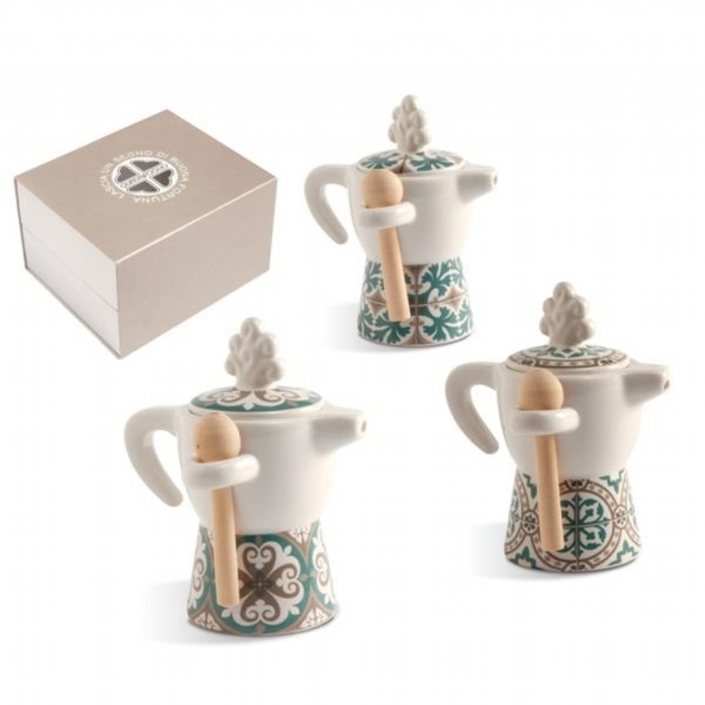 Moka zuccherirea in porcellana artistica, assortita in 3 diversi decori.