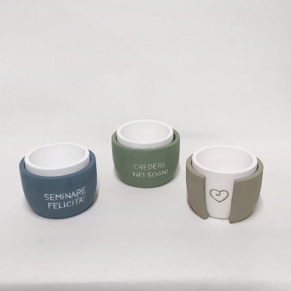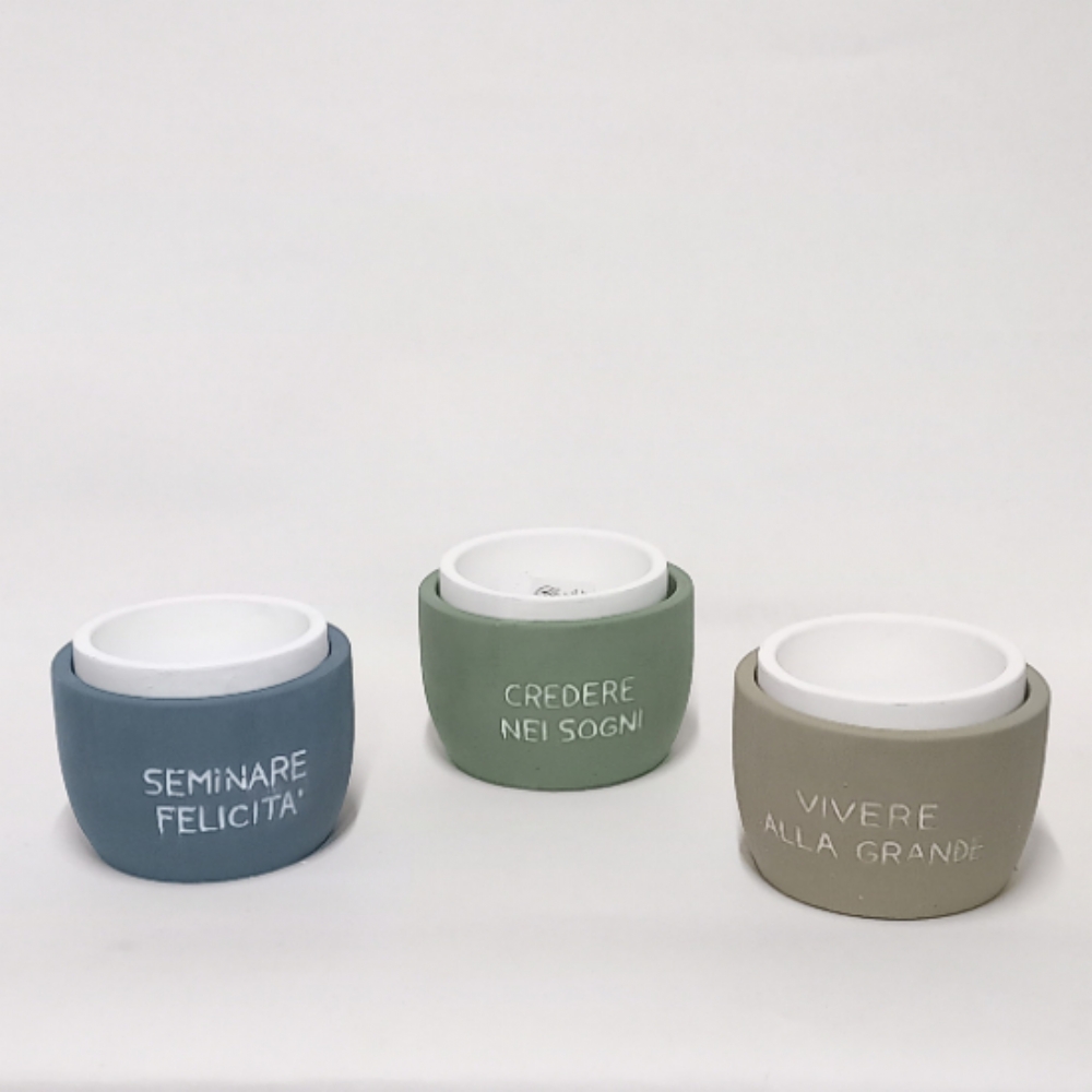 Il fantastico porta piante è disponibile in tre colori assortiti e su ogni bomboniera è possibile trovare una di queste scritte: "vivere alla grande", "seminare felicità " o "credere nei sogni ".