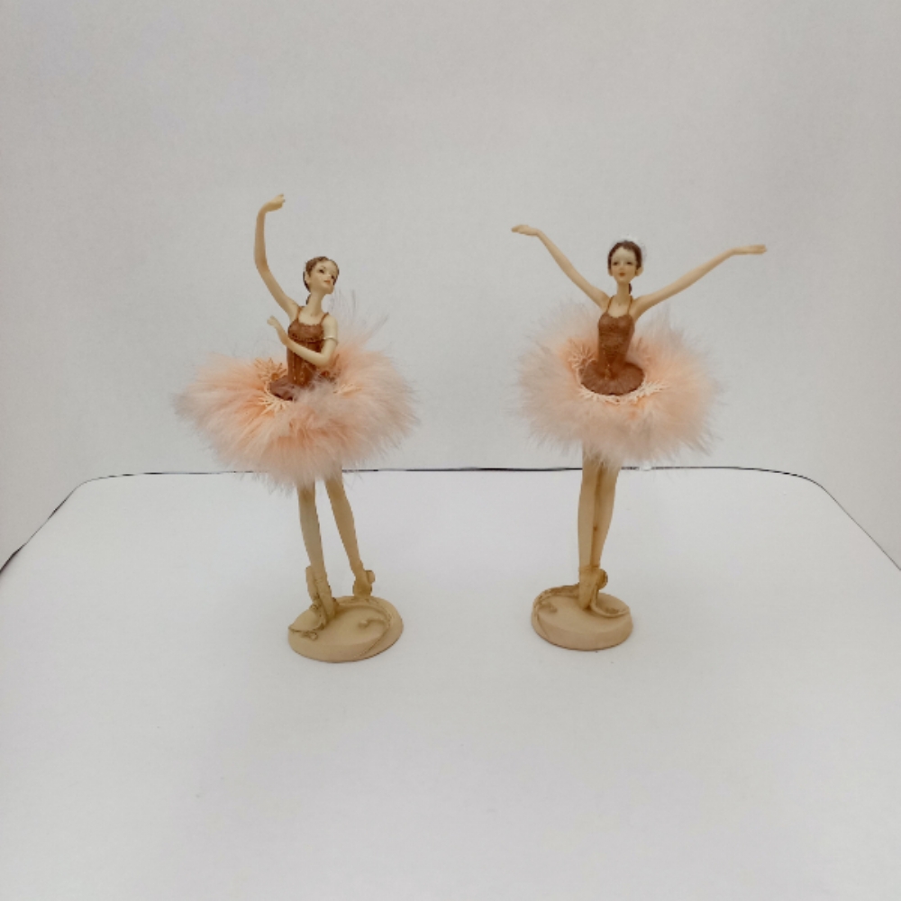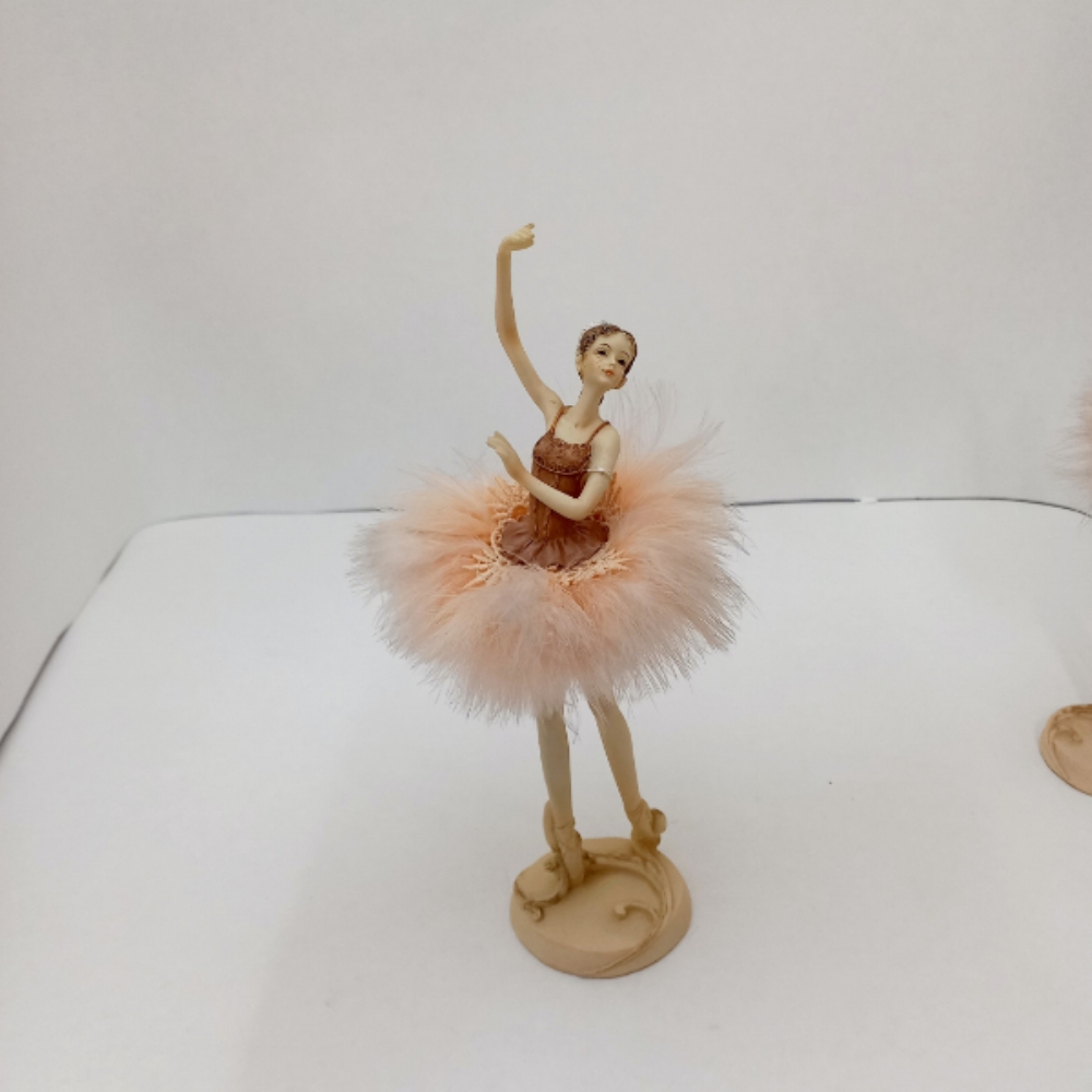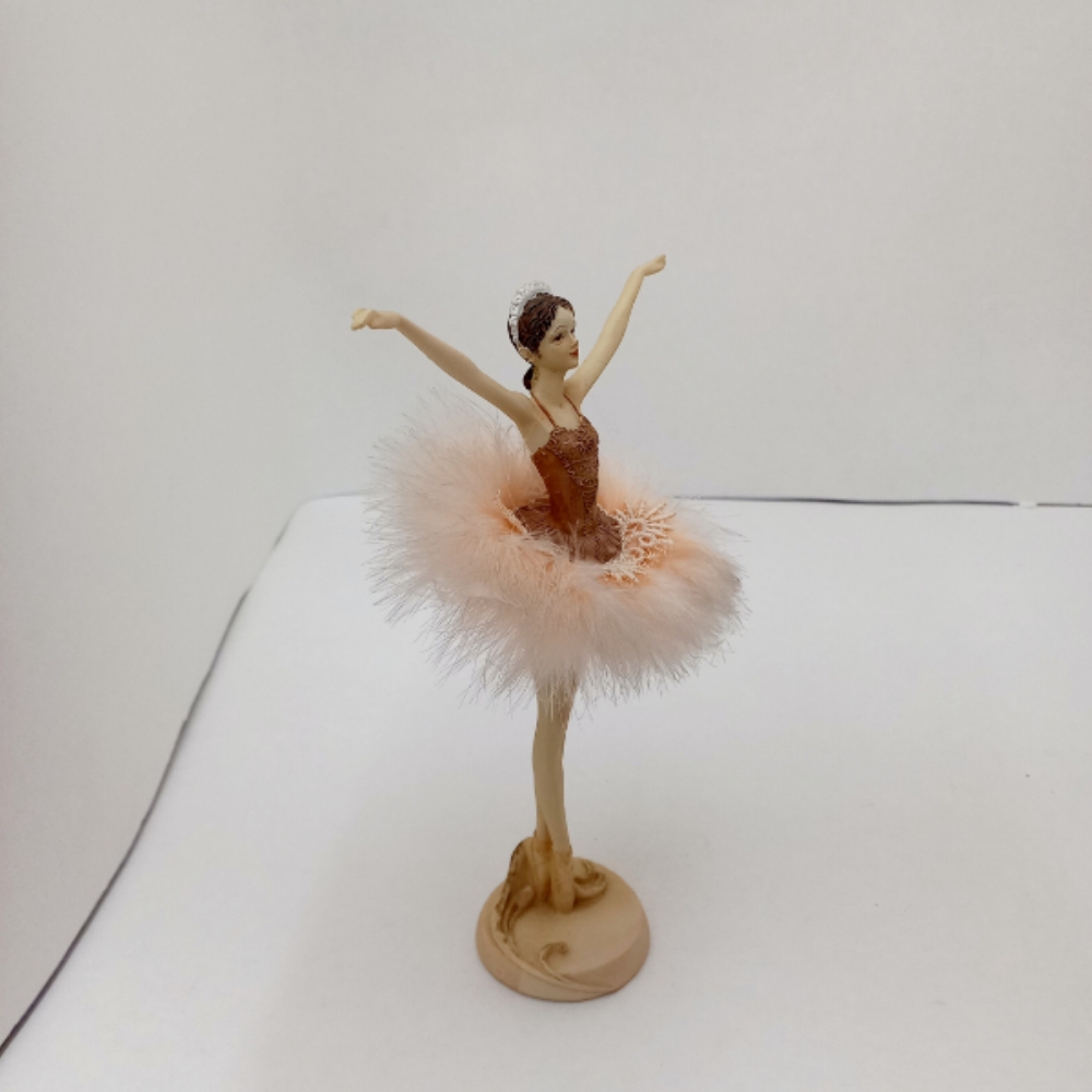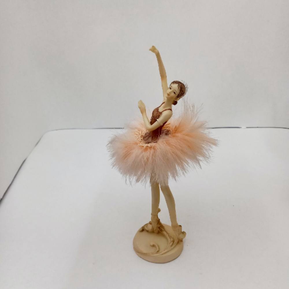 Ballerina in resina con la gonnellina del tutù in piume color cipria.