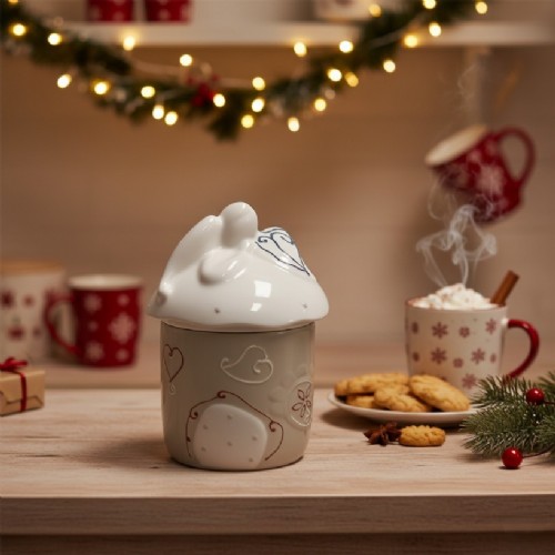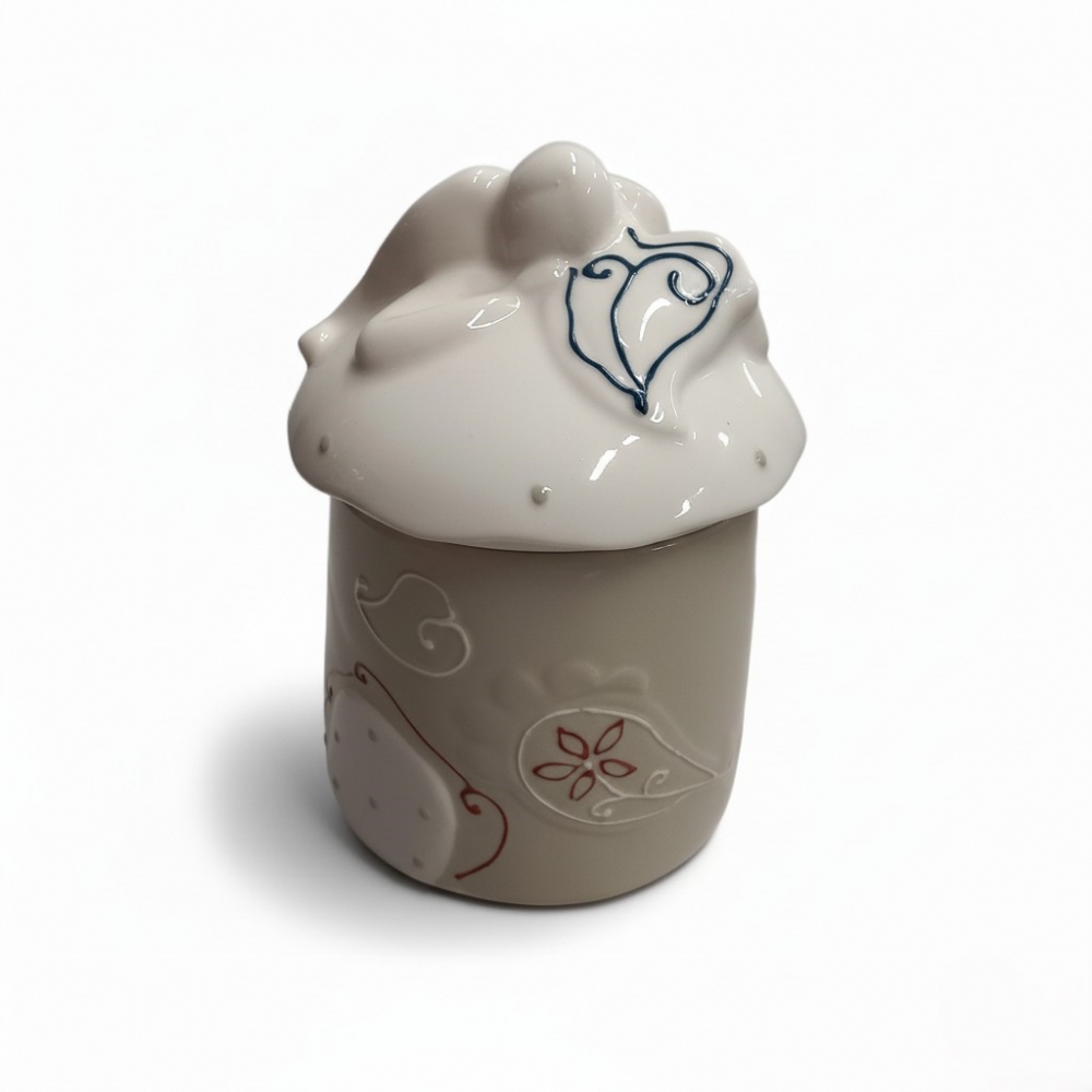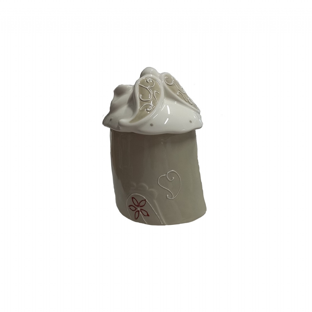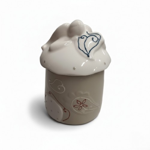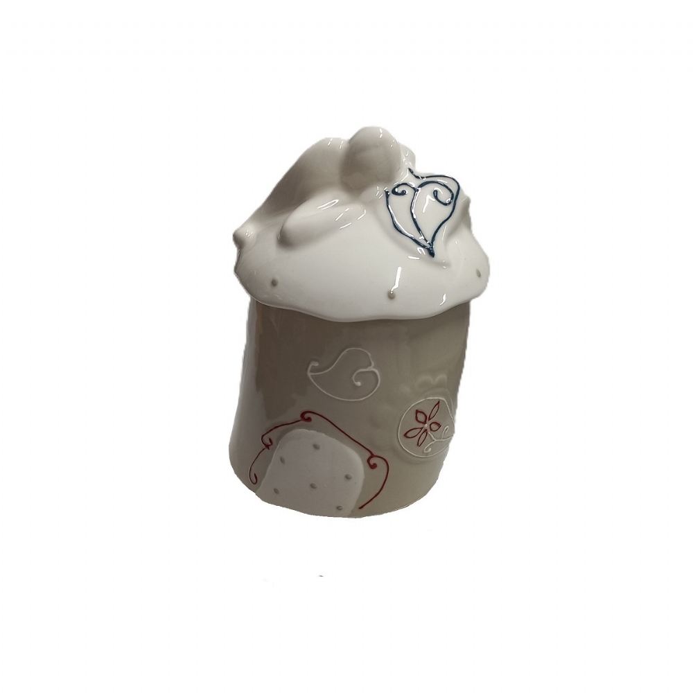 La base, in una calda tonalità Grigio Chiaro/Tortora, è arricchita da delicati decori che evocano un'atmosfera fiabesca e accogliente. Ogni piccolo dettaglio e ogni imperfezione sono la firma dell'identità artigianale del prodotto, rendendo il tuo barattolo assolutamente unico.