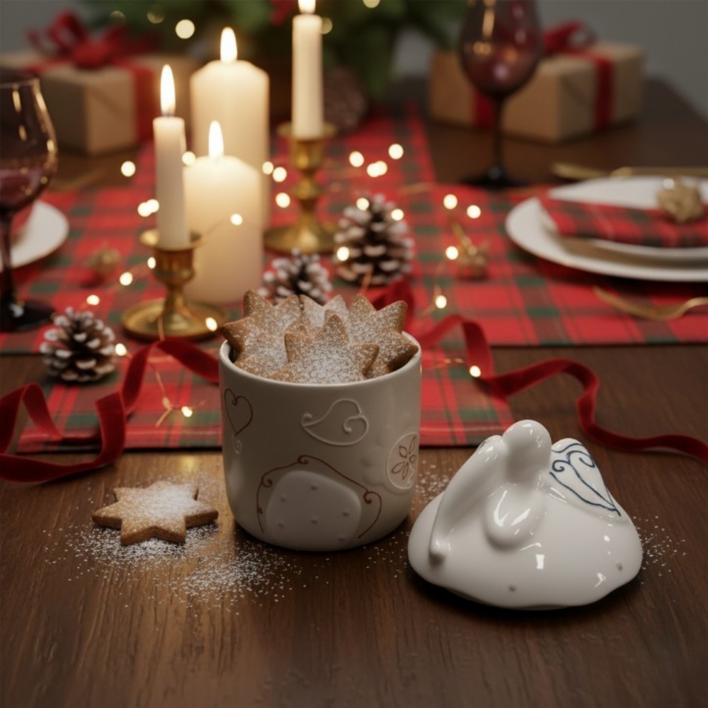 Perfetto per custodire i tuoi tesori culinari – dai biscotti fatti in casa al tuo tè preferito – o semplicemente come elemento decorativo che parla di calore e cura.