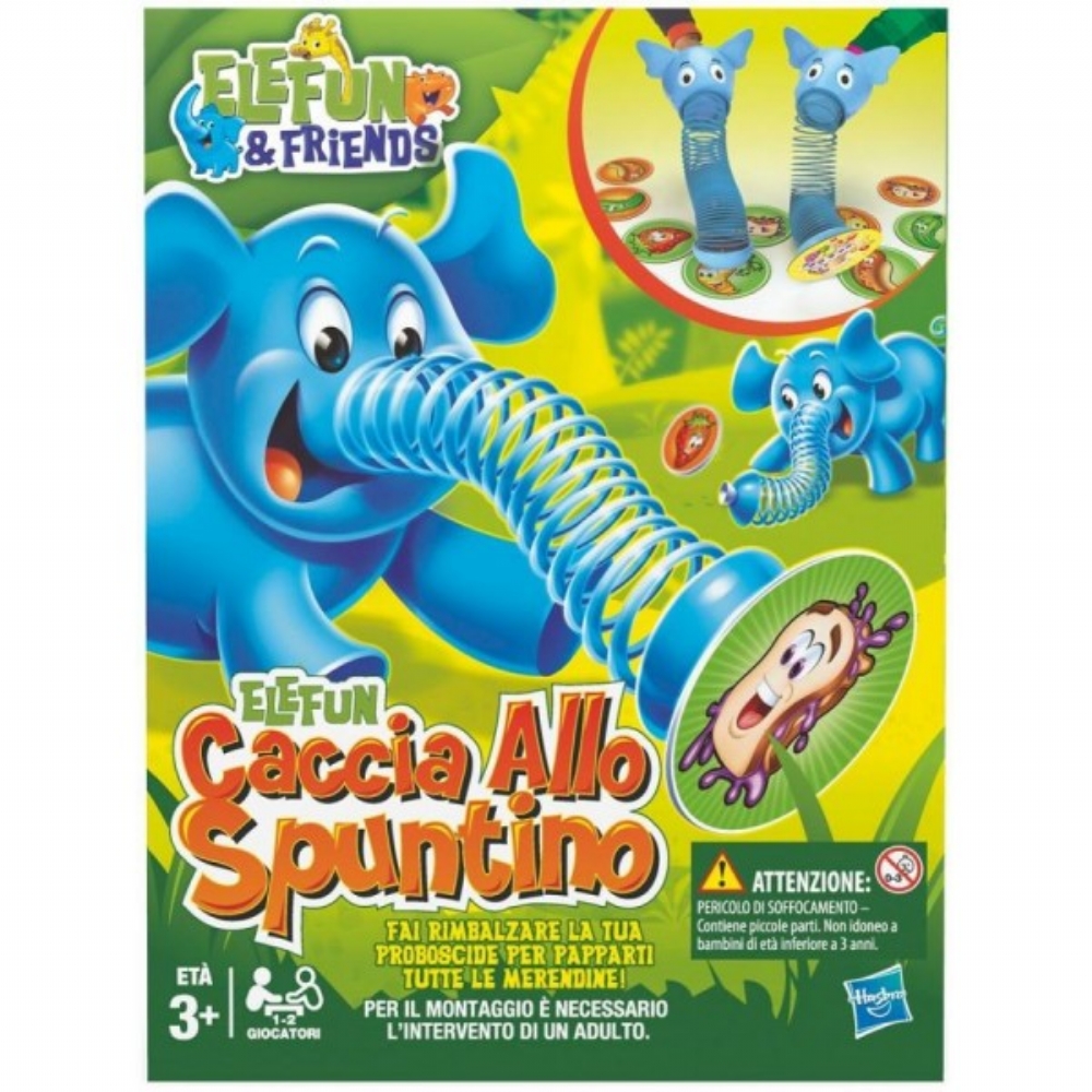 Fai rimbalzare la tua proboscide per papparti tutte le merendine lanciati a molla nel divertimento e prendi le deliziose merendine di Elefun ci sono ben 3 giochi diversi per divertirti coi tuoi amici Elefun: 1) scopri per primo la torta tutti frutti per essere proclamato all'istante vincitore. 2) forma il maggior numero di coppie di merendine e vinci la partita. 3) conquista per primo tutti gli spuntini del tuo colore.