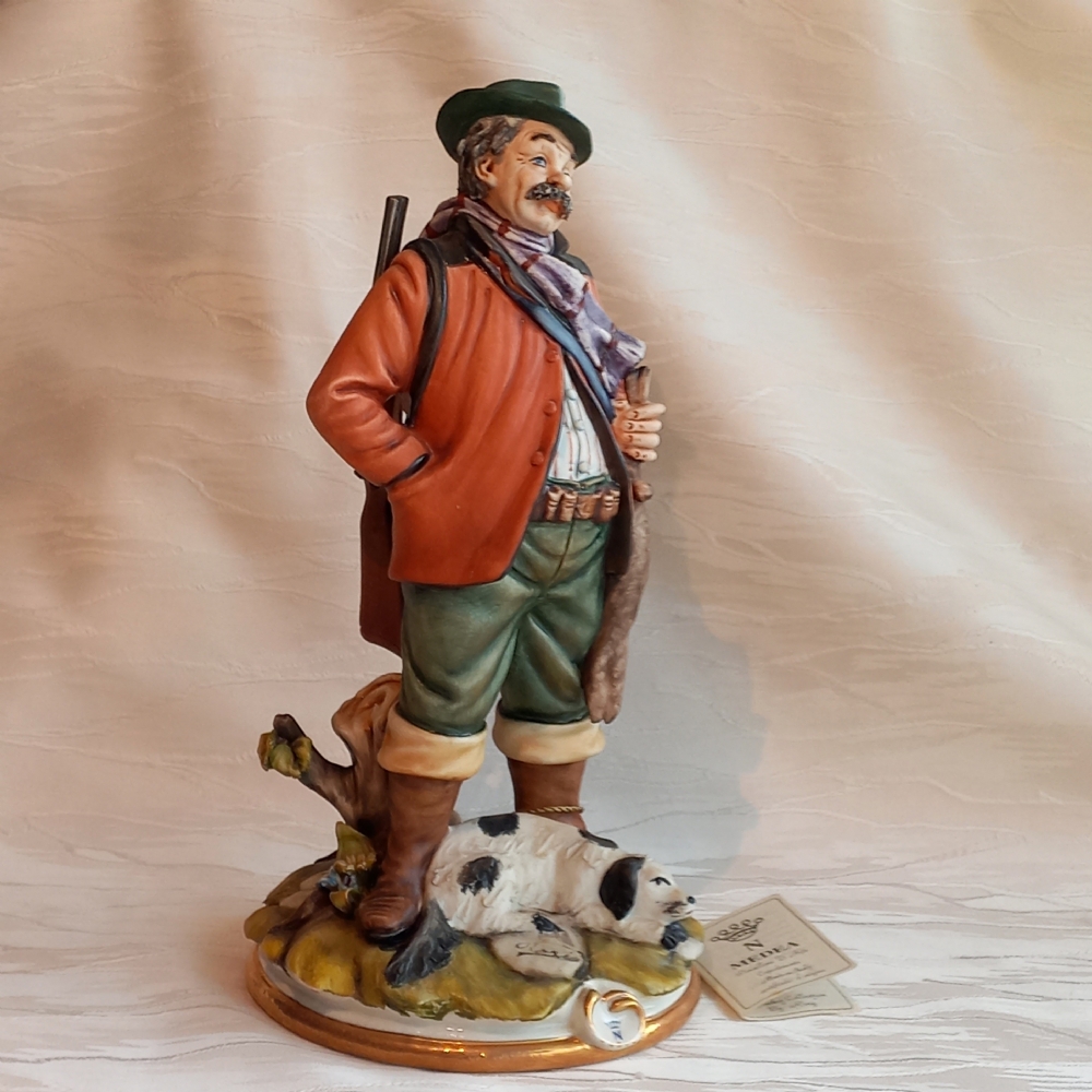 Statuina in Porcellana di Capodimonte "Cacciatore con Cane" - Scena di Caccia - Collezione La Medea