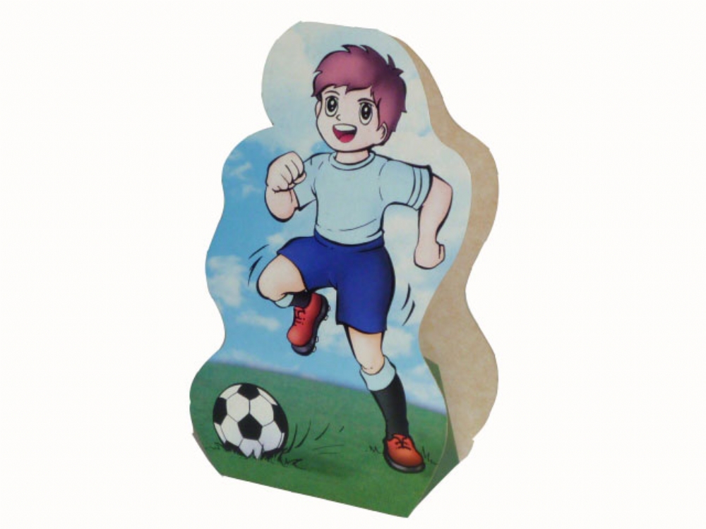 Scatolina porta confetti in cartoncino colorato, a forma di calciatore.