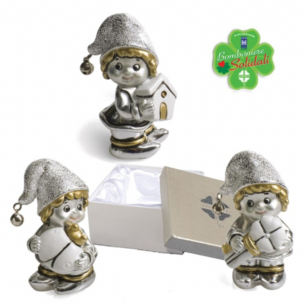 Folletto in resina argentata e smaltata, assortito in 3 versioni.