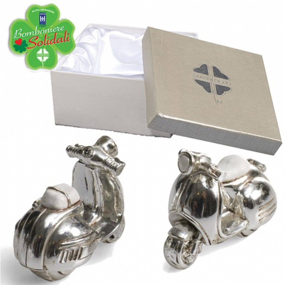Soggetto Vespa in resina argentata e smaltata, assortito in 2 versioni.