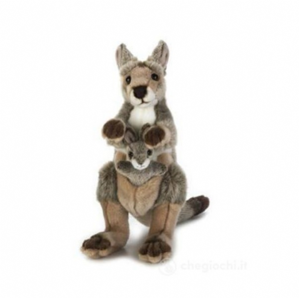 Canguro con il suo piccolo nel marsupio, morbido e coccoloso.