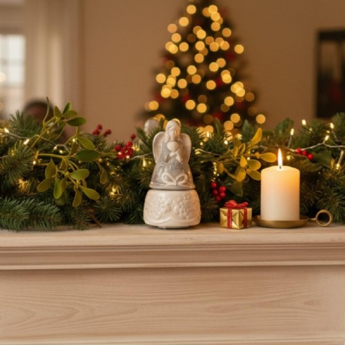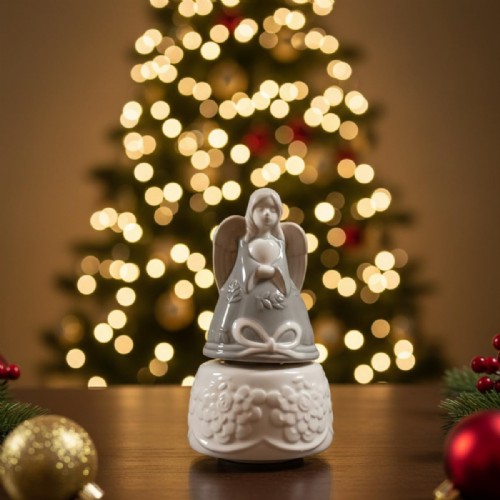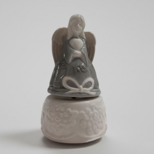 La figura dell'angelo, raffigurato con un piccolo cuore, dona un senso di protezione e affetto. All'attivazione, il carillon diffonde una dolce melodia che riempie l'ambiente di tranquillità e gioia.