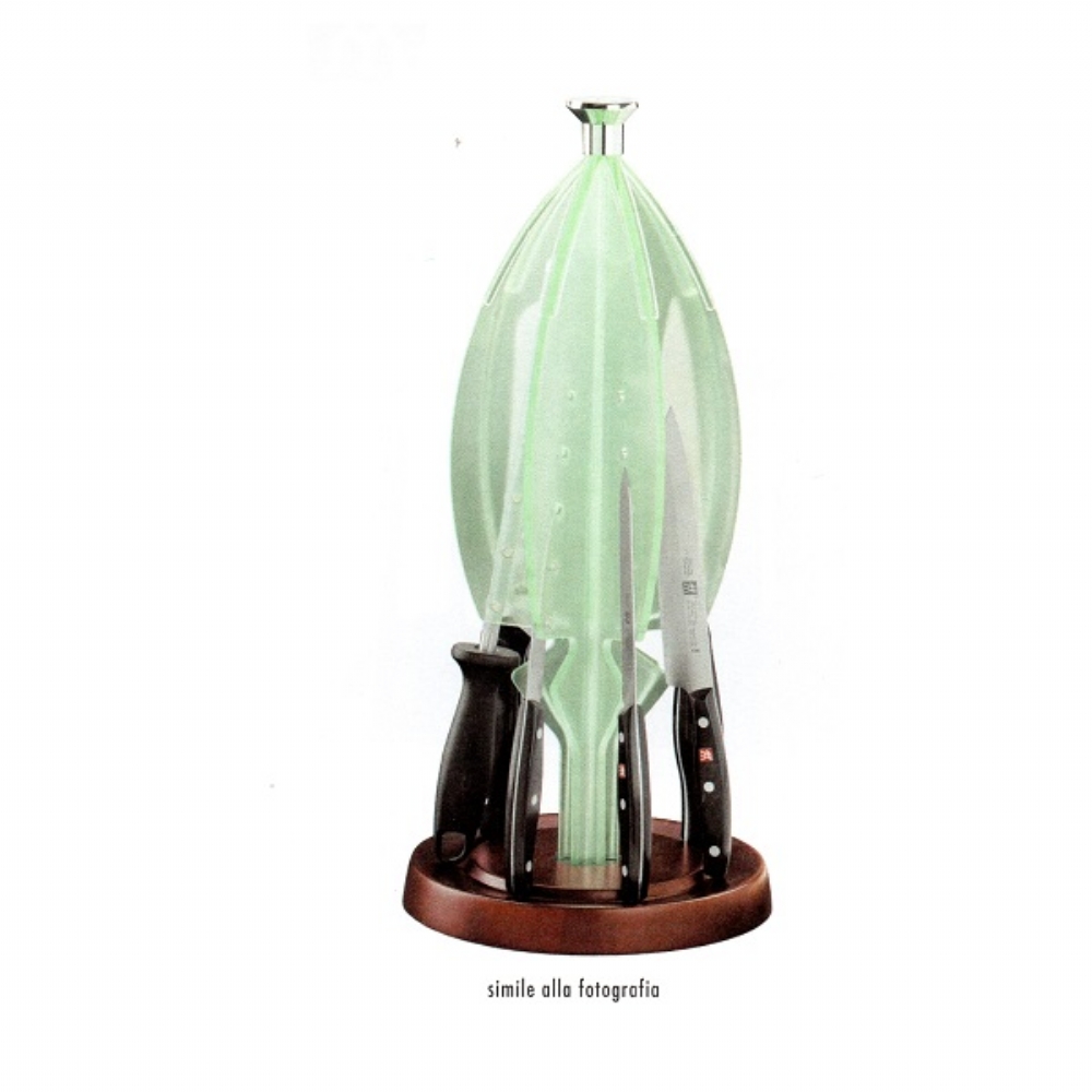La qualità con un diverso formato: il ceppo rotondo è girevole, per avere sempre a portata di mano il coltello giusto; le lame sono sempre protette e ben visibili; l'appoggio della lama è magnetico, per una perfetta tenuta dei coltelli; il ceppo è progettato per tenere 6 coltelli + 1 acciaino.