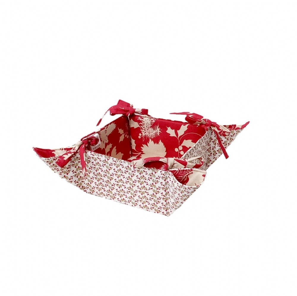 Cestino quadro con un lato decorato micro Bacche ed un lato foglie bicolore.