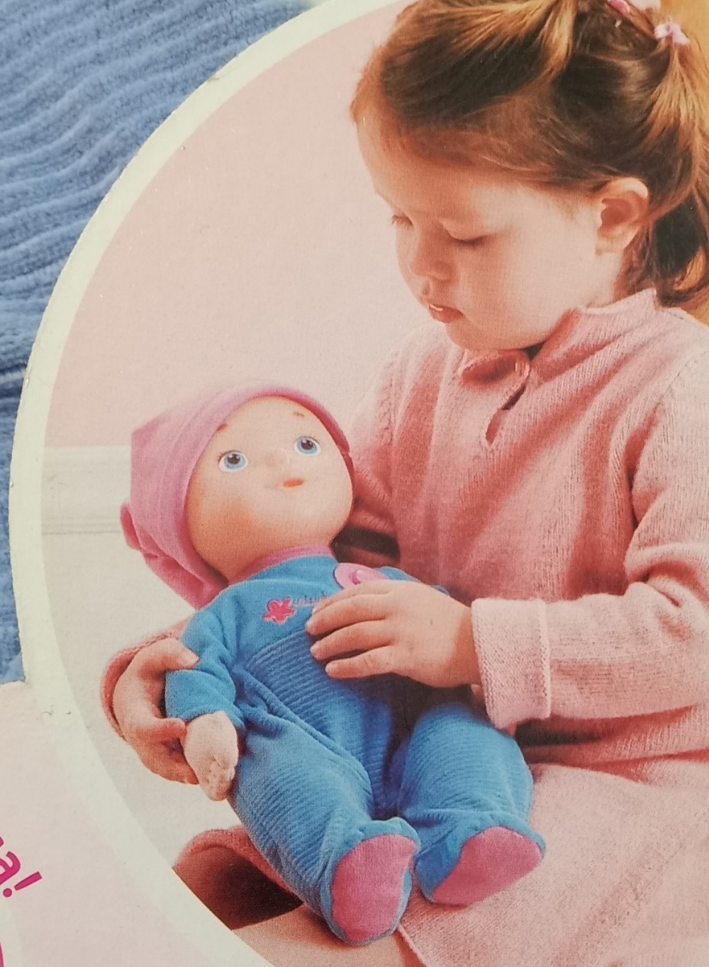 Questa versione č una morbida tutina azzurra completata da un berrettino rosa.