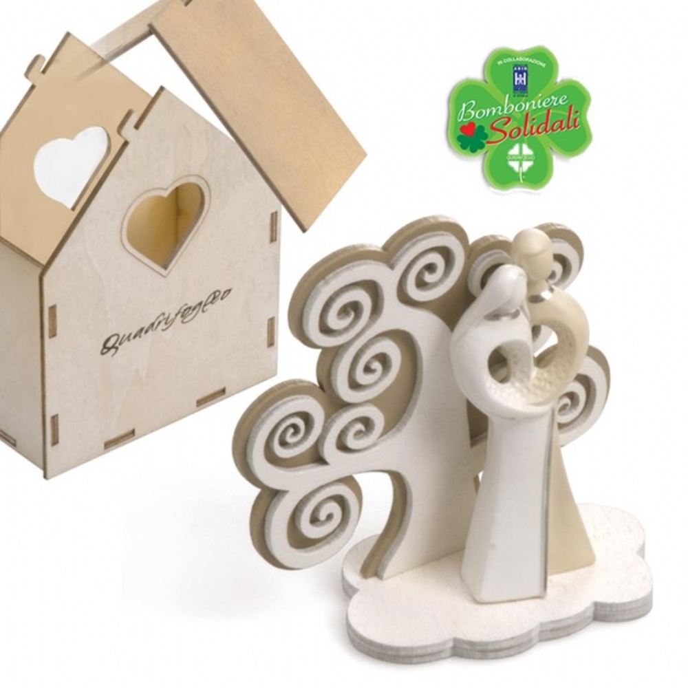 Coppia artistica in resina con albero della vita in legno.