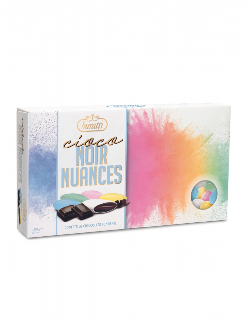 Pregiati confetti finissimi al cioccolato fondente, colorati nelle nuove nuance color lilla.