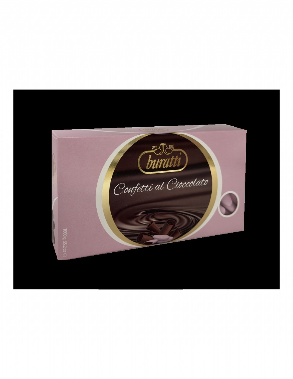 Pregiati confetti finissimi al cioccolato fondente, di colore rosa.
