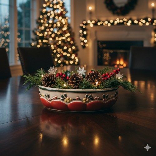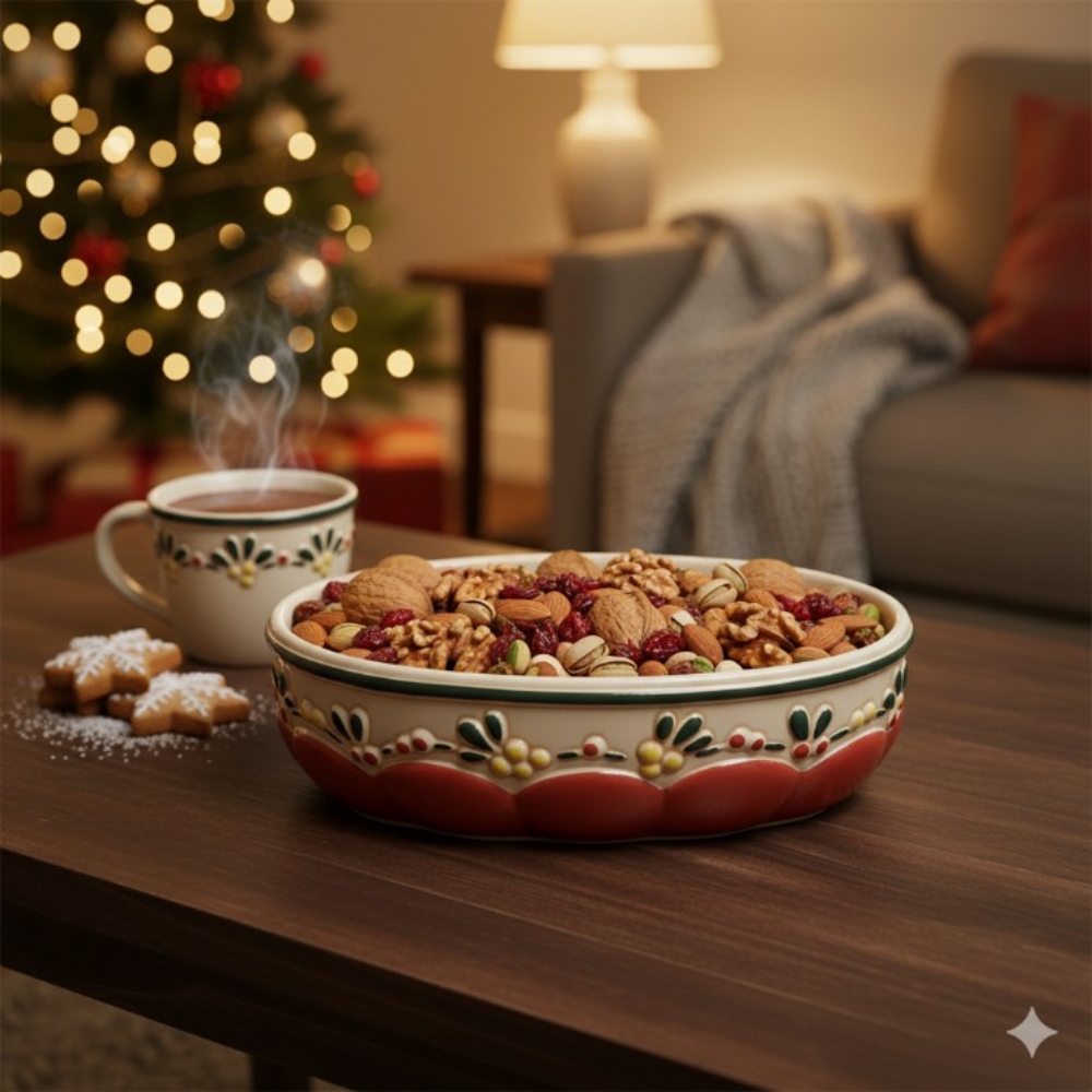 La sua realizzazione in Kergrès® Wald garantisce un'eccellente resistenza. Il design a rilievo, con i suoi delicati decori che richiamano la tradizione Natalizia, assicurano ad ogni pezzo un fascino unico e duraturo.