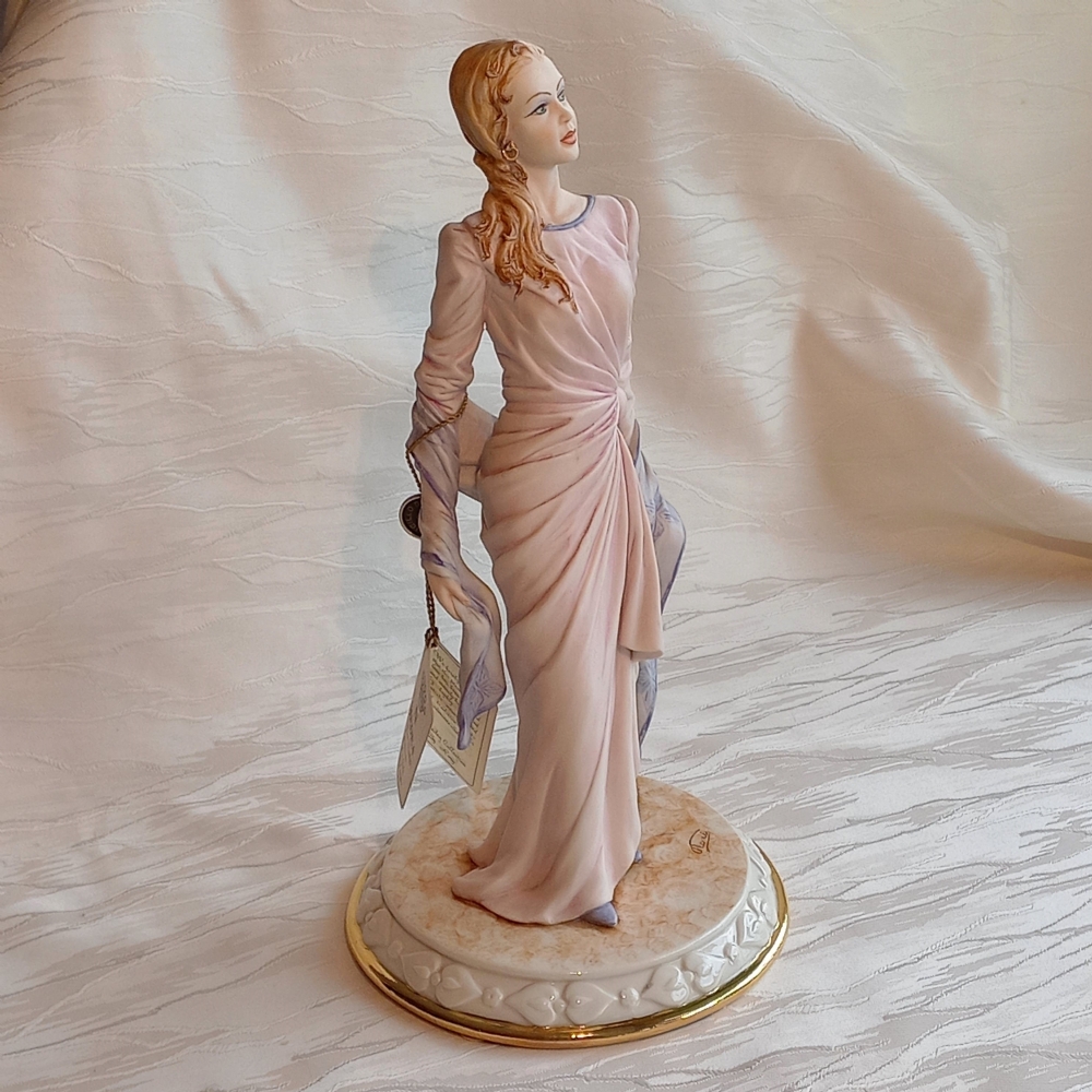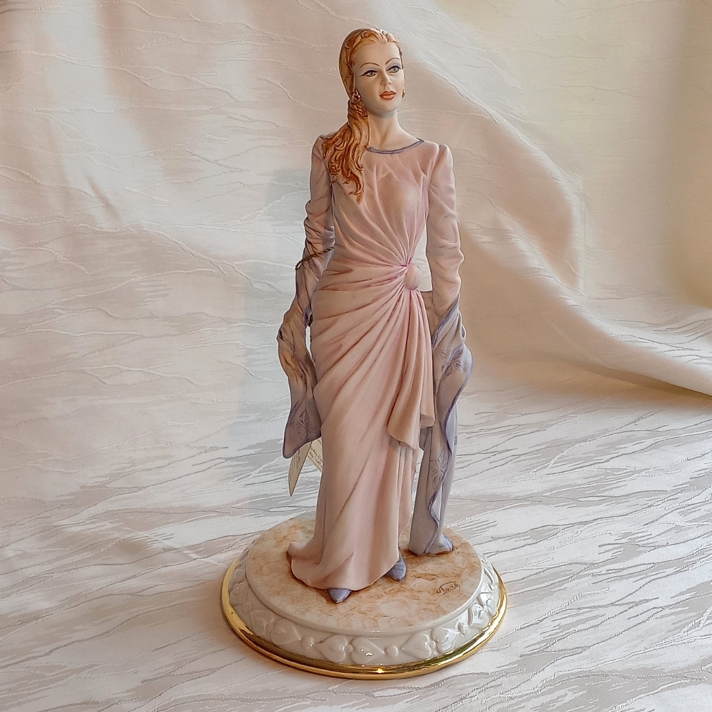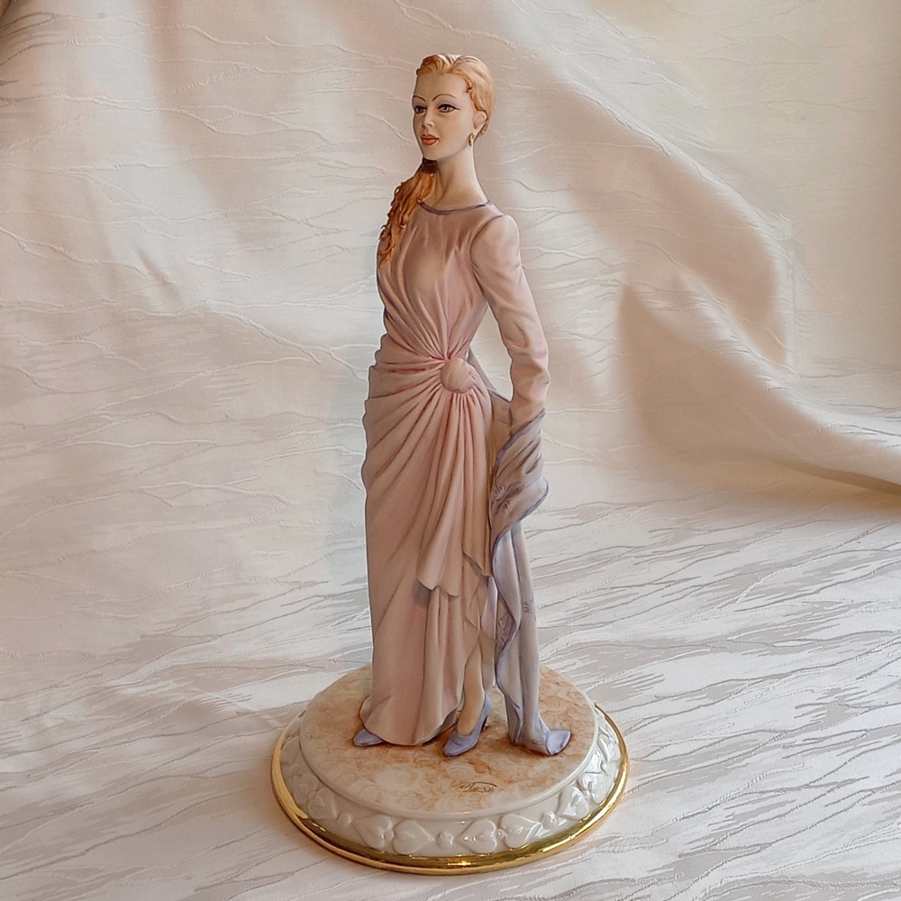 Erede della storica arte di Capodimonte, nata nel XVIII secolo sotto il regno di Carlo III di Borbone e perpetuata con passione da La Medea dal 1967, questa statuina raffigura una figura femminile avvolta in un elegante abito dalle linee fluide, con un delicato drappeggio e una posa che esprime quieta sicurezza. Ogni dettaglio, dalla morbidezza delle stoffe all'espressione serena del volto, è reso con una minuziosa cura che testimonia l'eccellenza dell'artigianato italiano. La statuina poggia su una base finemente decorata con dettagli dorati.