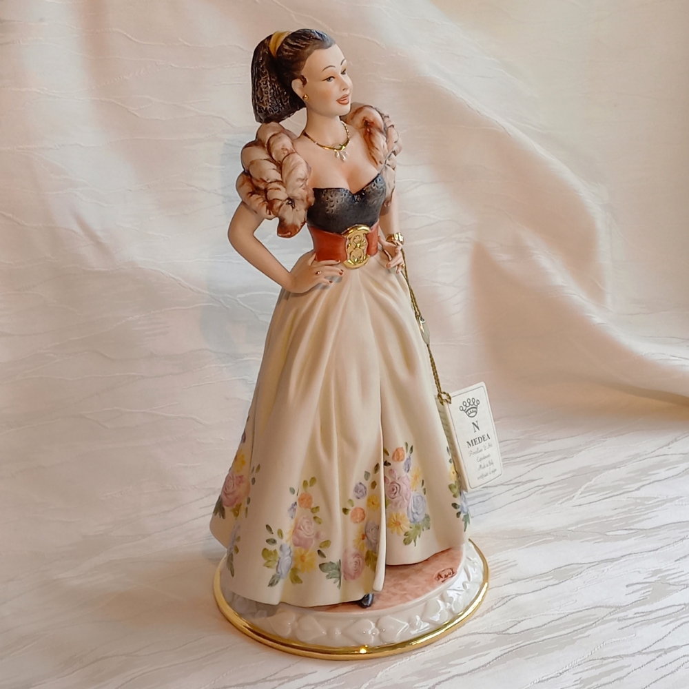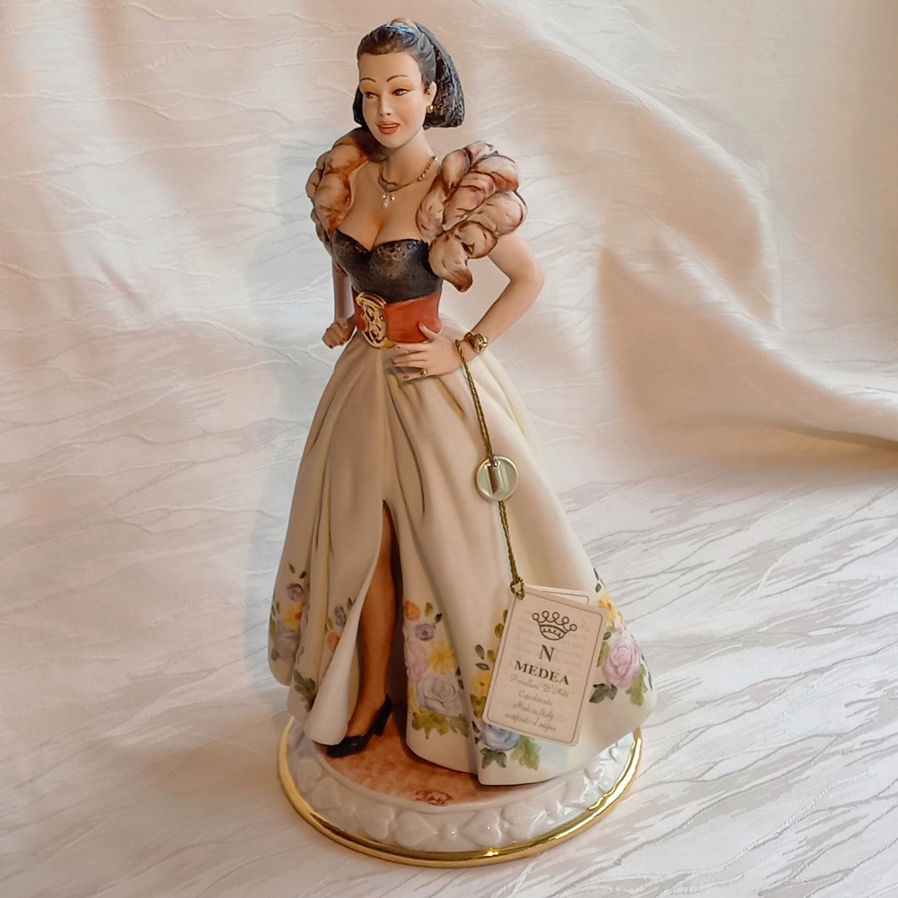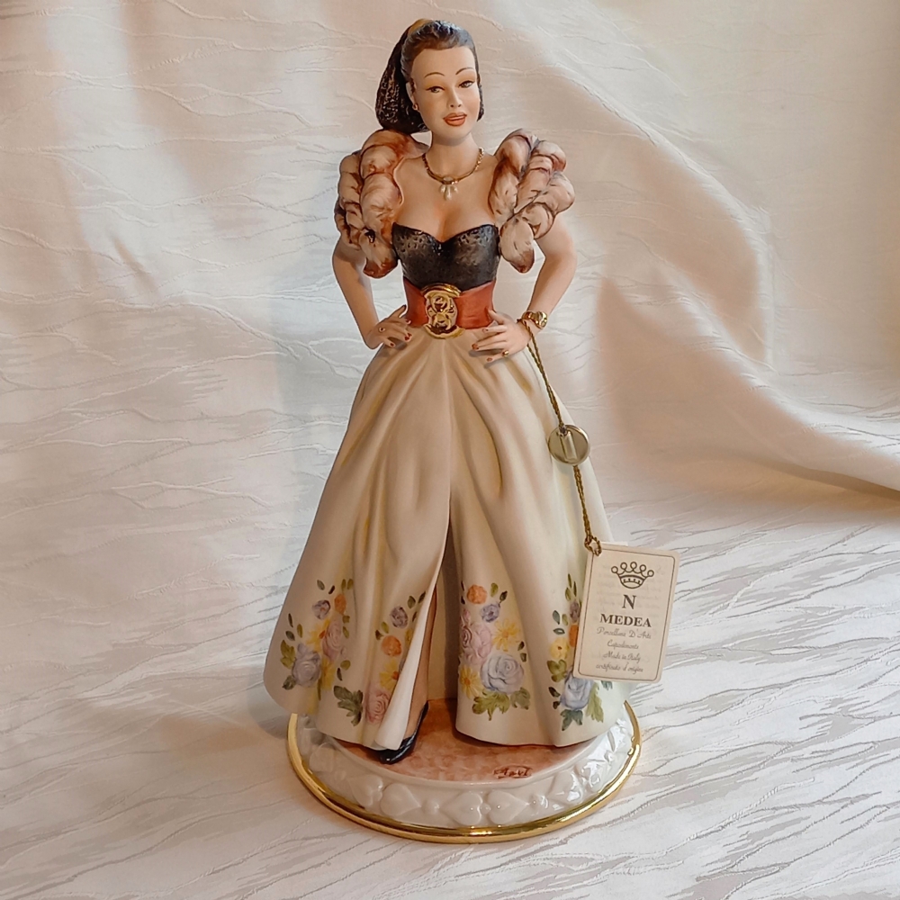 Aggiungi un tocco di glamour d'altri tempi e di autentica tradizione italiana alla tua collezione o alla tua casa con questa magnifica statuina de La Medea. Un capolavoro che racconta un'epoca di eleganza e spettacolo con raffinatezza e teatralità.