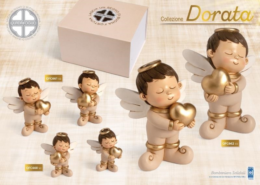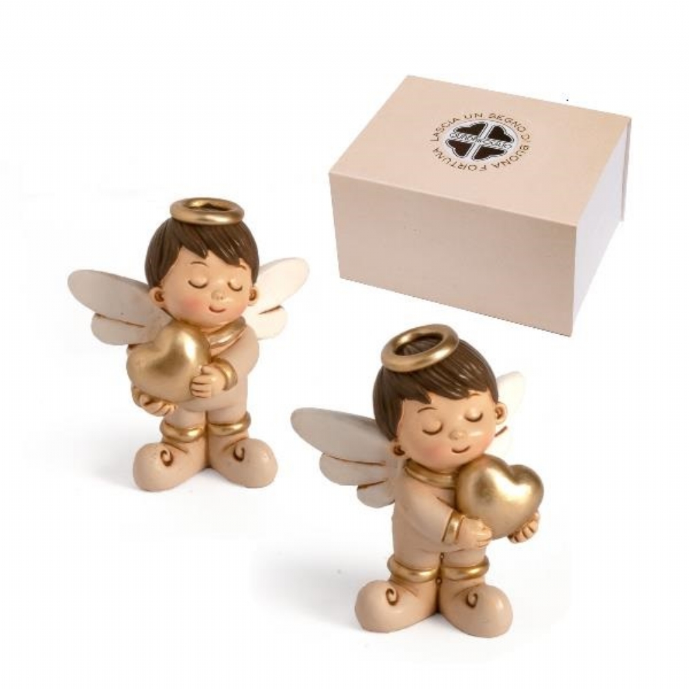 Assortito in 2versioni: Angioletto che abbraccia il cuore dorato sulla destra, oppure sulla sinistra