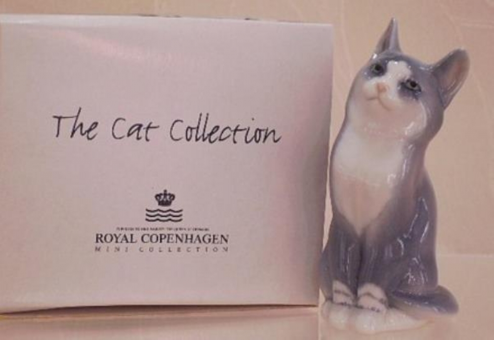 DescrizioneFigurina in porcellana finissima fatta a mano e dipinta a mano, fa parte della serie"Mini Cats" della Royal Copenhagen.Un pezzo di pregio, dai colori brillanti.Misure : 4,5 x 4,5 x 8,5 h