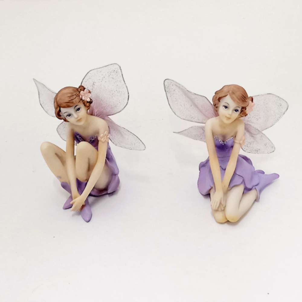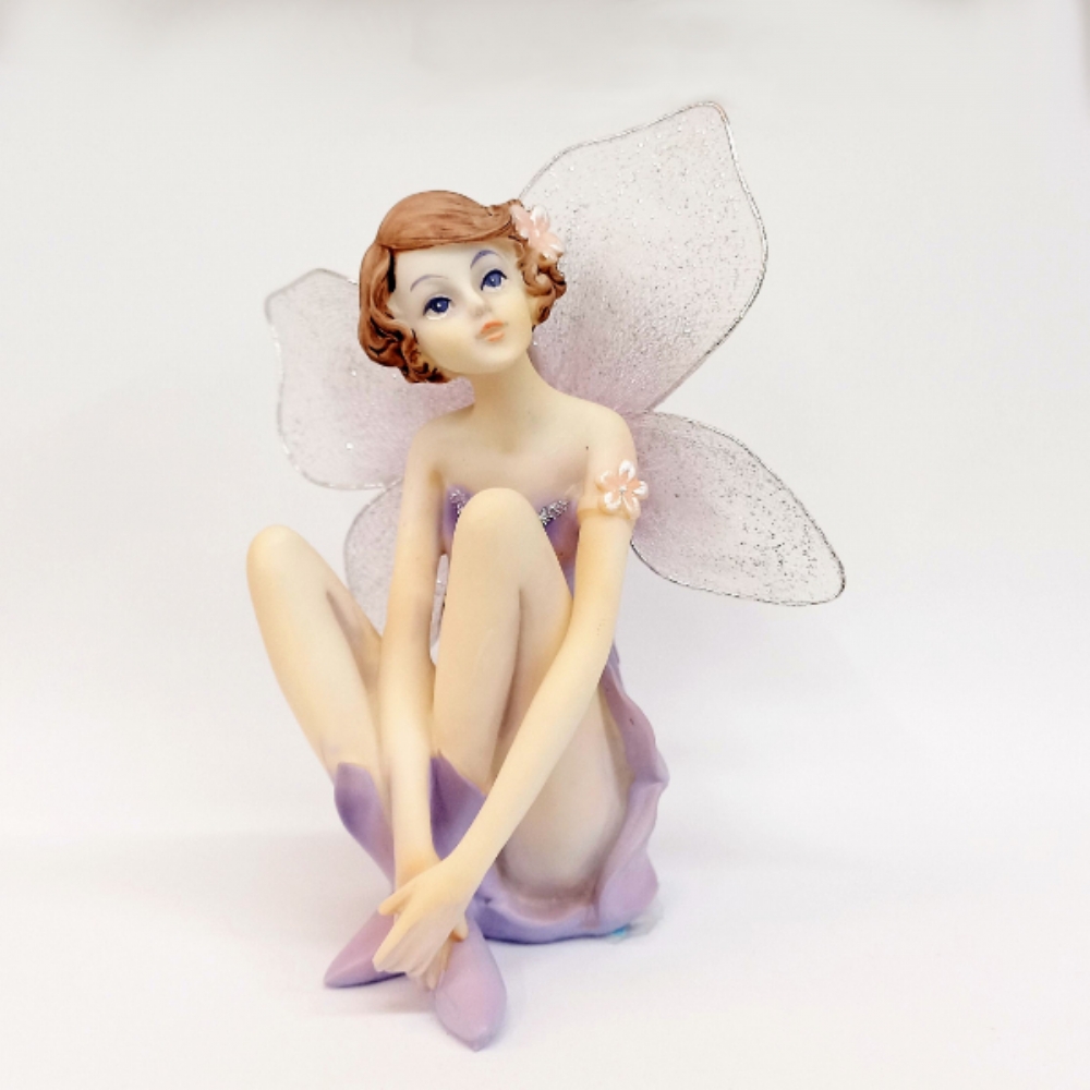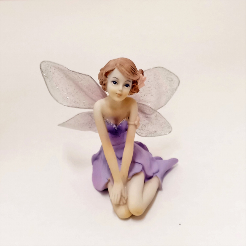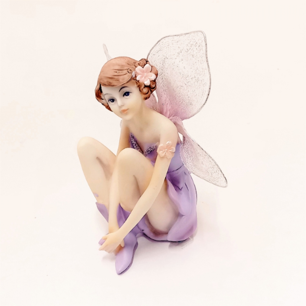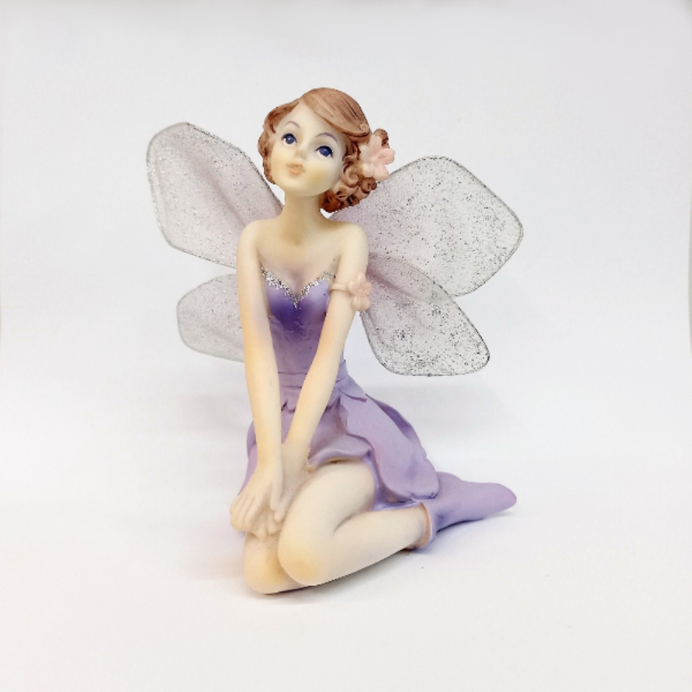 Fatina in resina viola con ali in tulle.