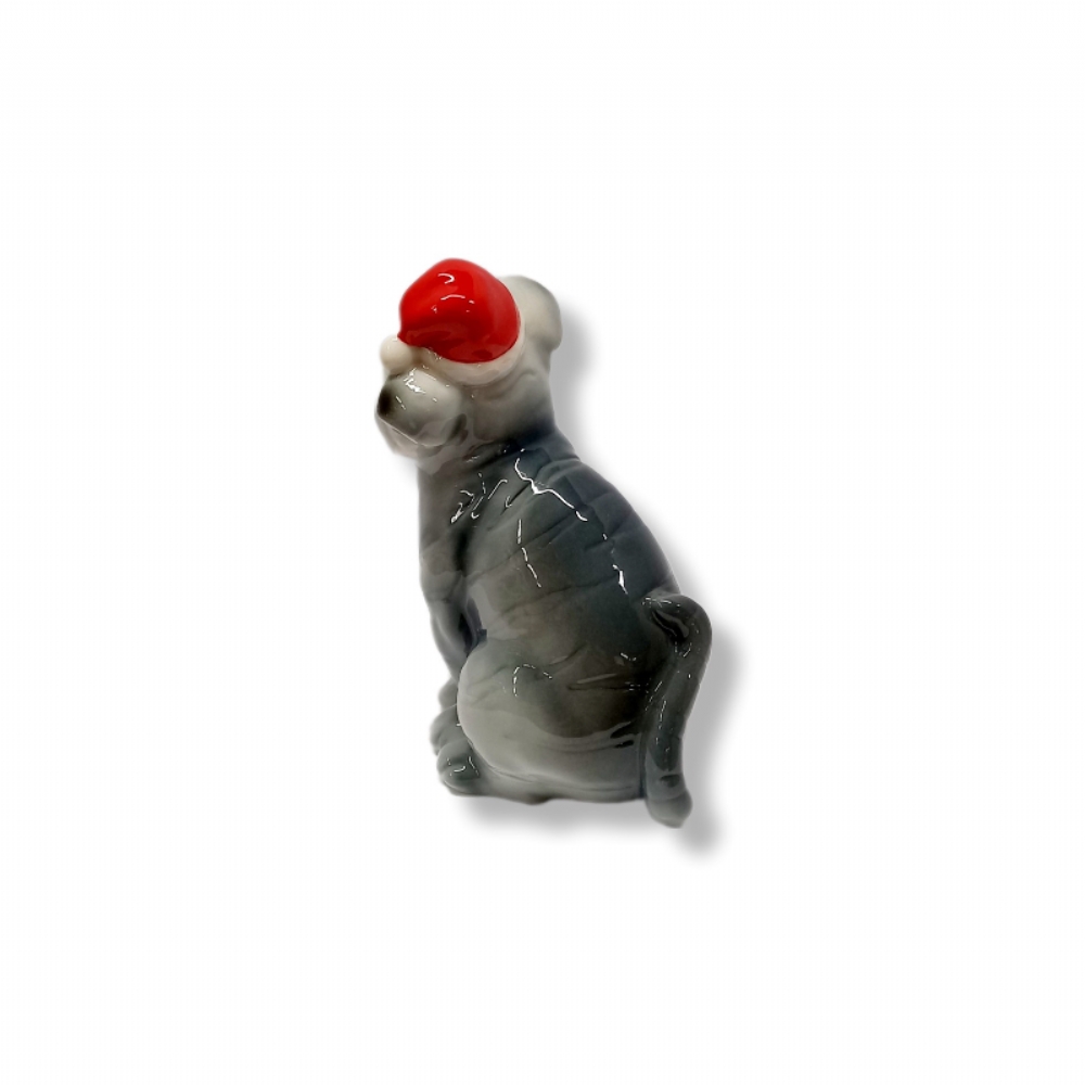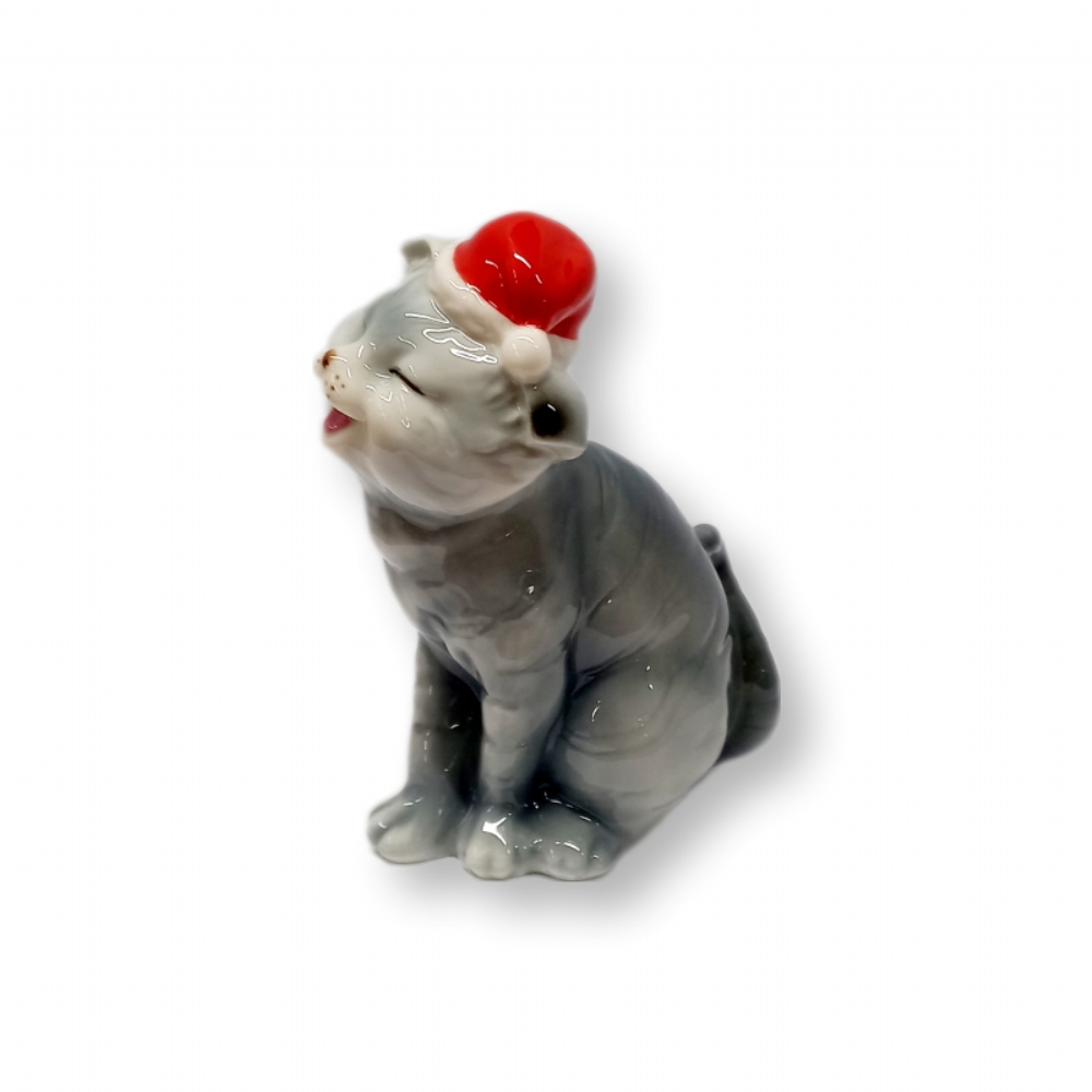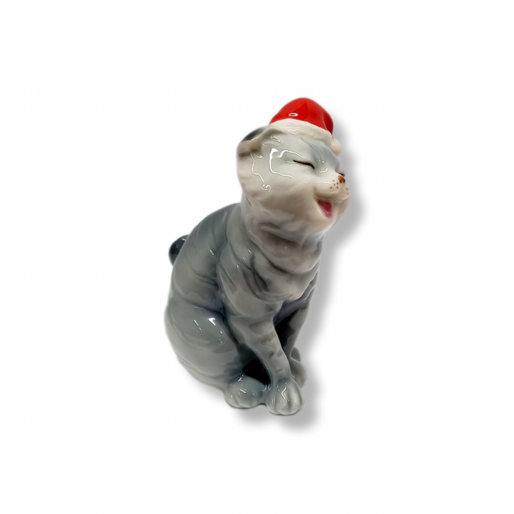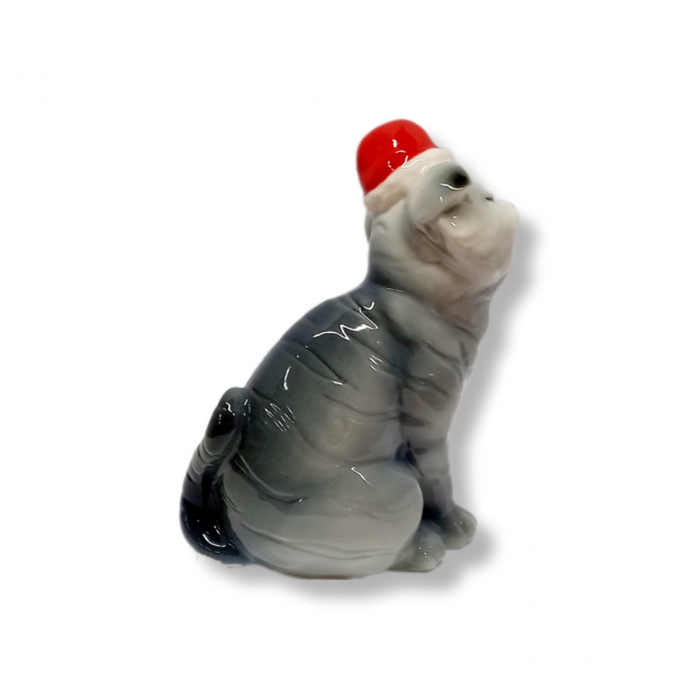 Rappresenta un gattino con il cappello Natalizio.