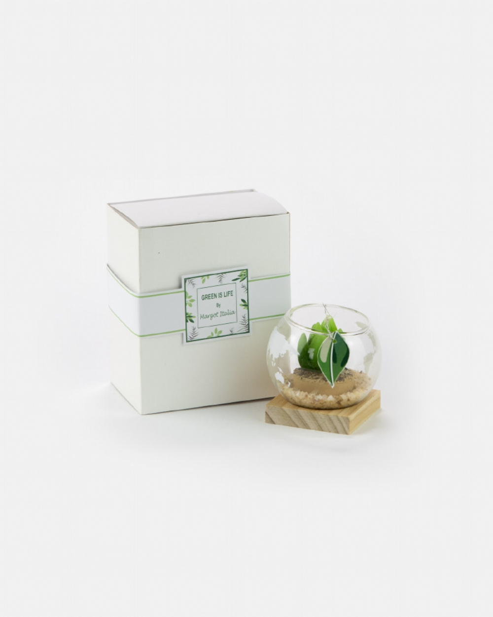 La confezione contiene anche la sabbia decorativa e la candela a forma di piantina