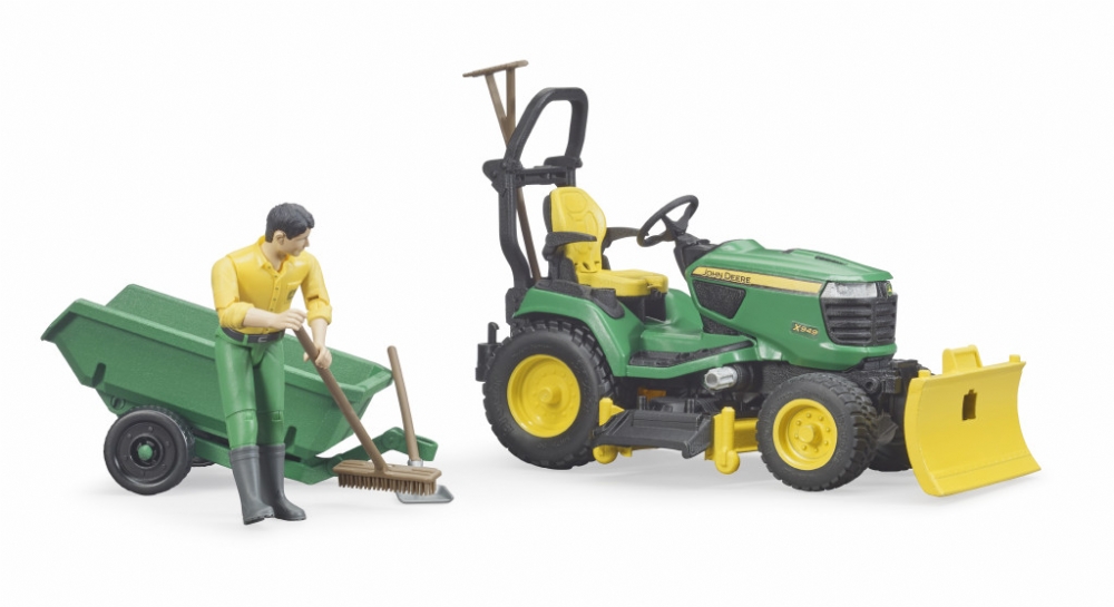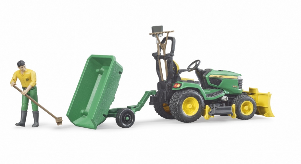Il tosaerba con rimorchio e giardiniere è una edlle nuove aggiunte di Bruder al suo mondo dedicato al giardinaggio.