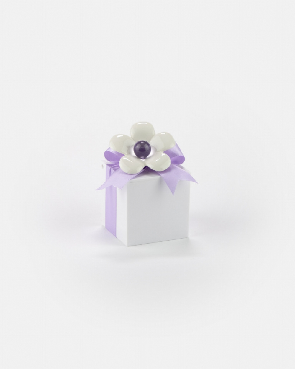 Applicazione piccola a forma di fiore con centro di colore lilla scuro, realizzato artigianalmente in Italia