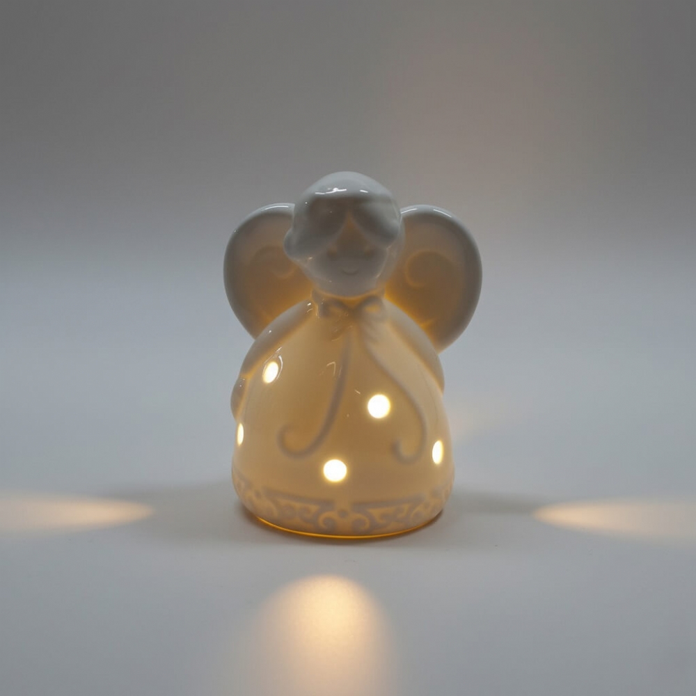 Un angioletto di porcellana che porta con sé un dolce bagliore. Questo Mini Angelo Luminoso è il tocco di tenerezza e luce ideale per ogni angolo della casa o come dono memorabile.