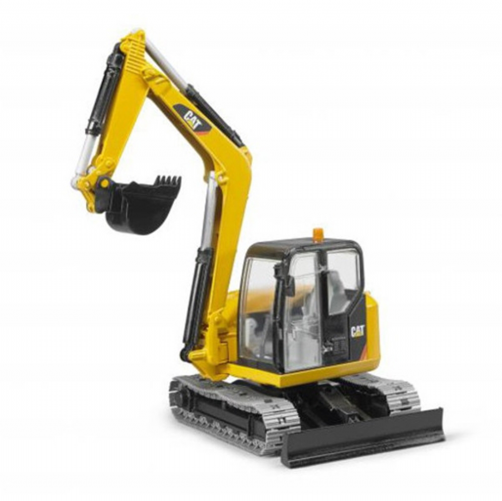 Cat mini escavatore su cingoli. Bruder ha realizzato questo mini escavatore per ampliare la linea dei suoi mezzi da cantiere. La cabina ha fineste in policarbonato trasparente e può ruotare a 360°. La benna dell'escavatore è facilmente manovrabile grazie alla pratica maniglia. La benna può essere rimossa. Realizzato in scala 1:16 con materiali di altissima qualità, questo mezzo consente ai bambini di giocare spaziando con la fantasia.