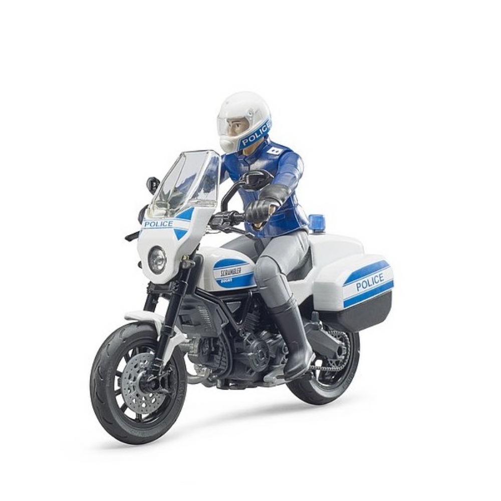 La confezione contiene un poliziotto in tenuta da motociclista, dotato di caso e guanti