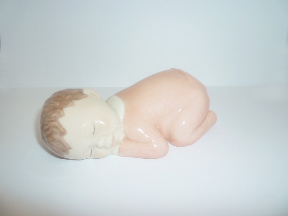 Figurina in porcellana realizzata da Royal Copenhagen utilizzando al tecnica del sottosmalto e rappresenta un bimbo che dorme.