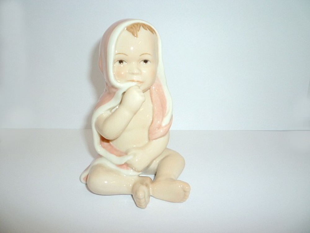 Figurina in porcellana realizzata da Royal Copenhagen utilizzando al tecnica del sottosmalto e rappresenta una bimbetta seduta.