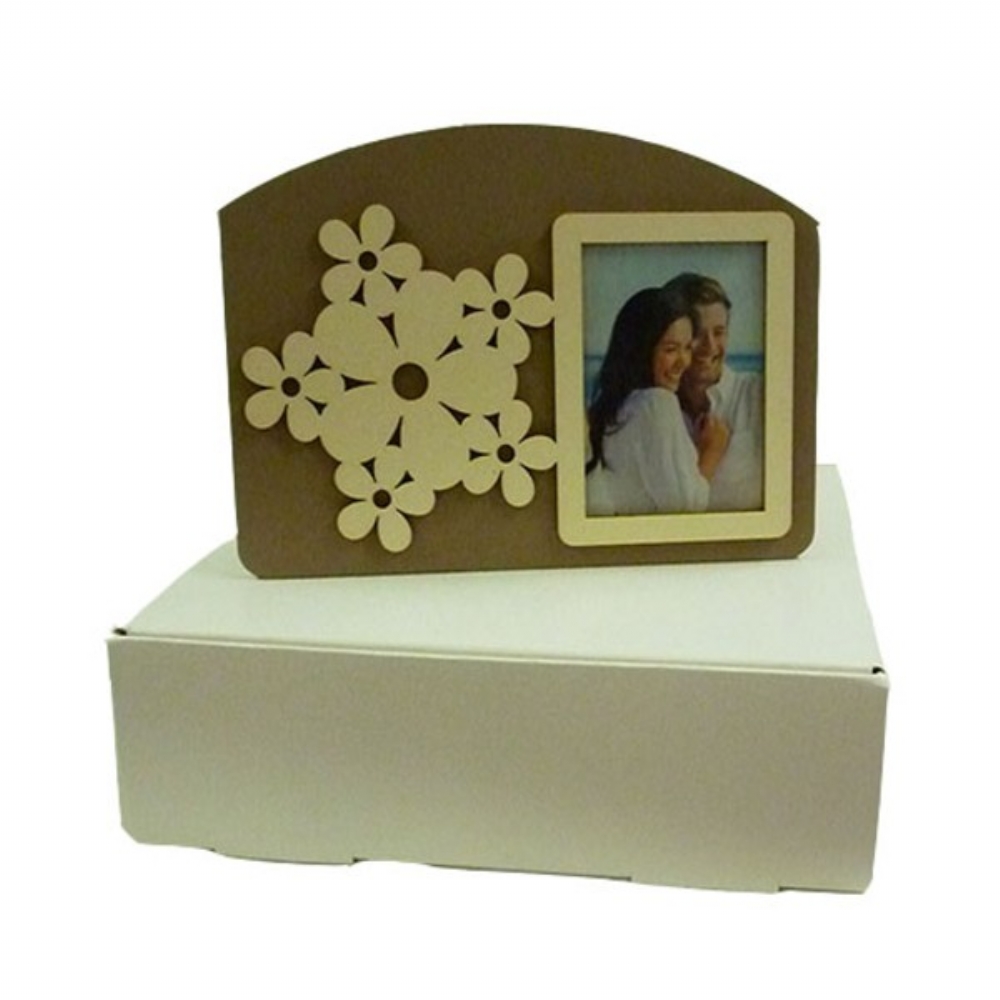 PORTA FOTO IN LEGNO TORTORTORA CON DECORO FIORI IN LEGNO CHIARO
