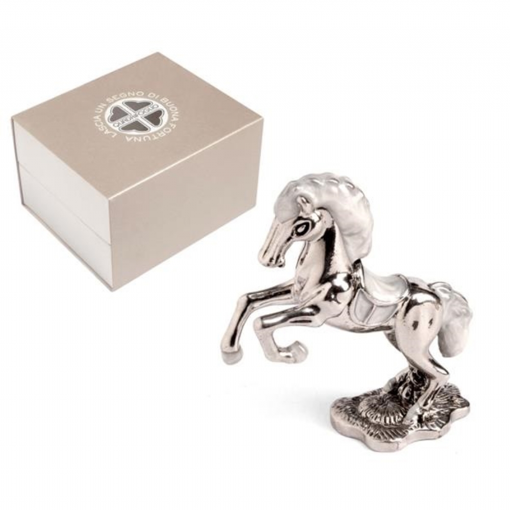 Cavallo in metallo smaltato.