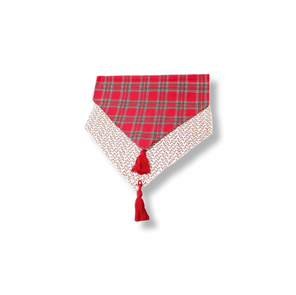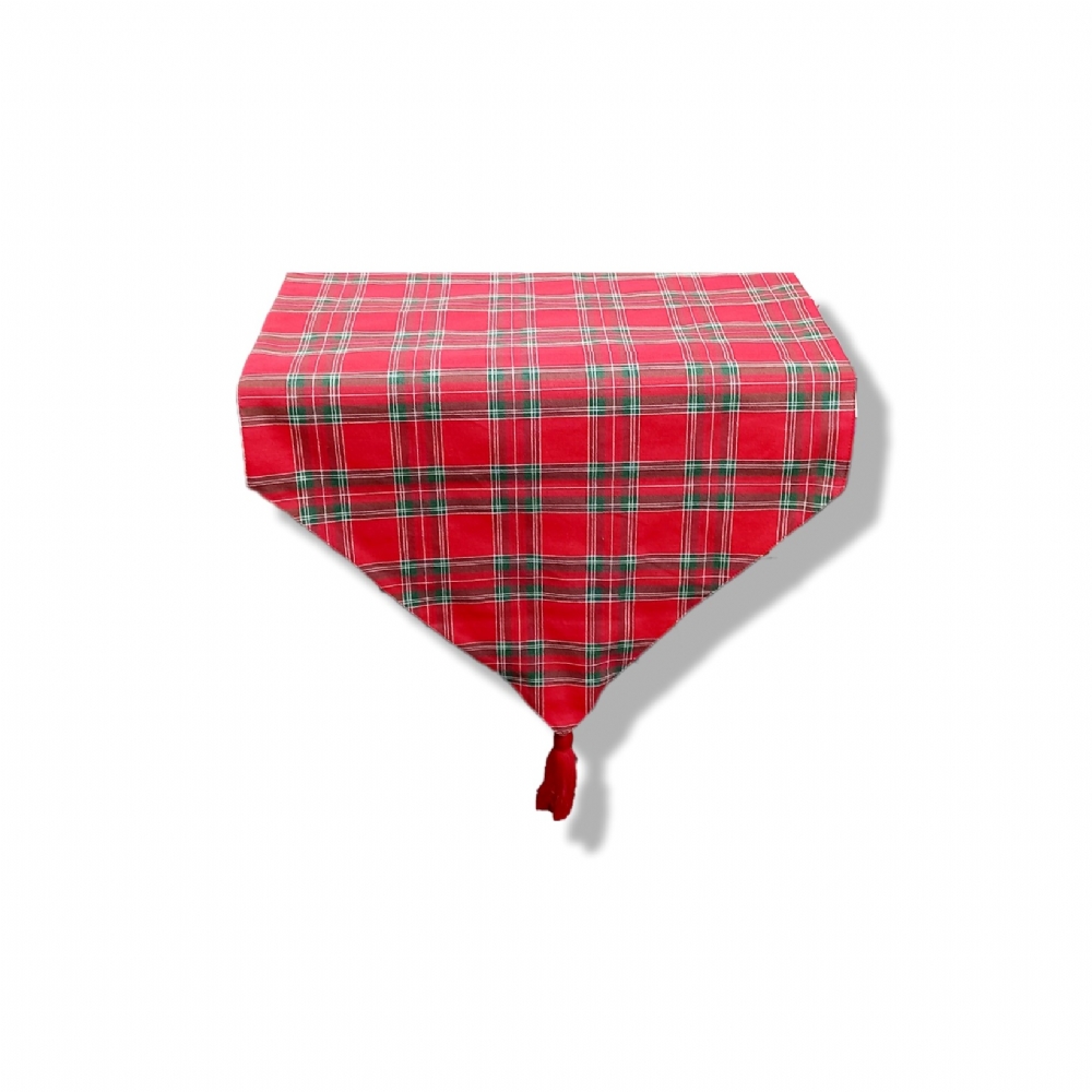 Runner a due punte con un lato decorato tartan e l'altro lato decorato con micro bacche.