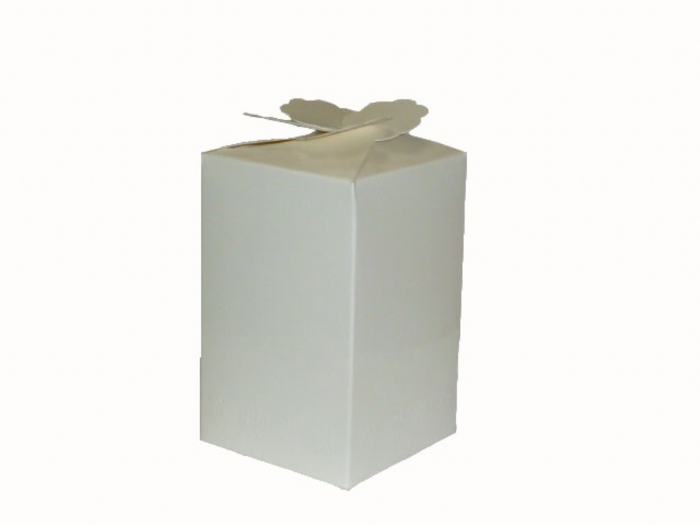 porta bomboniera in cartoncino avorio con chiusura a 4 petali.