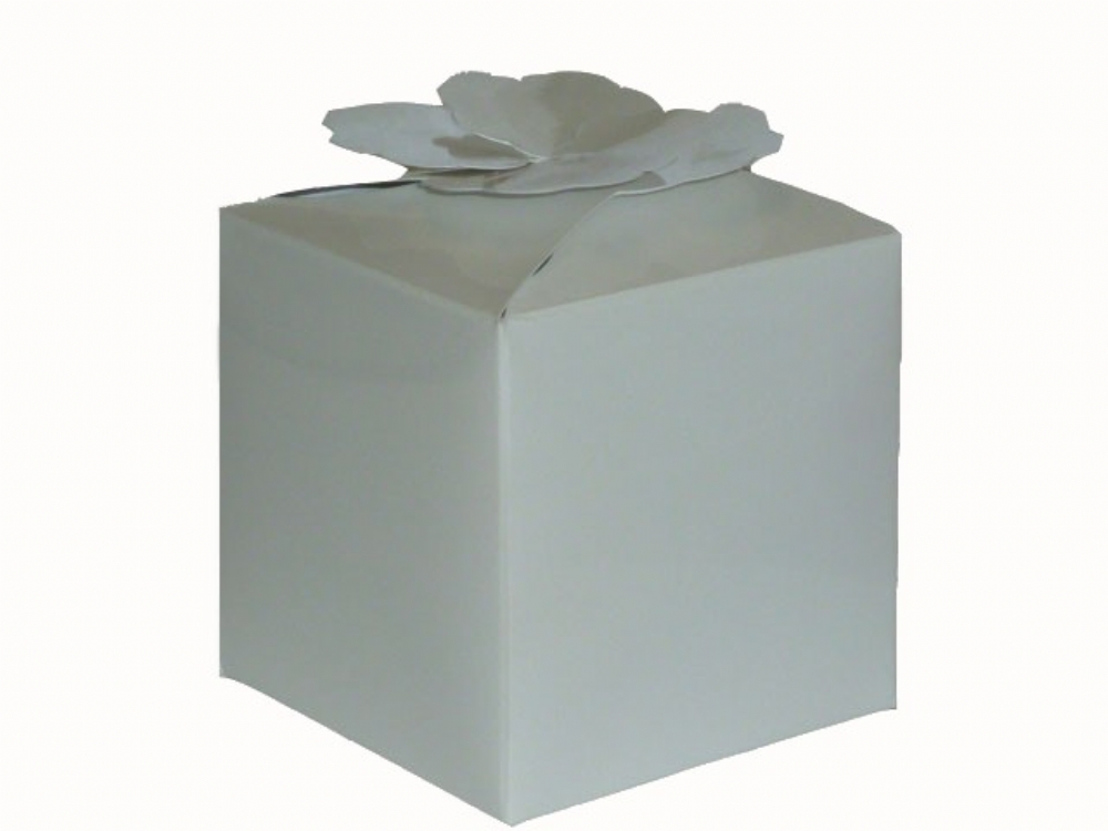 porta bomboniera in cartoncino bianco con chiusura a 4 petali.