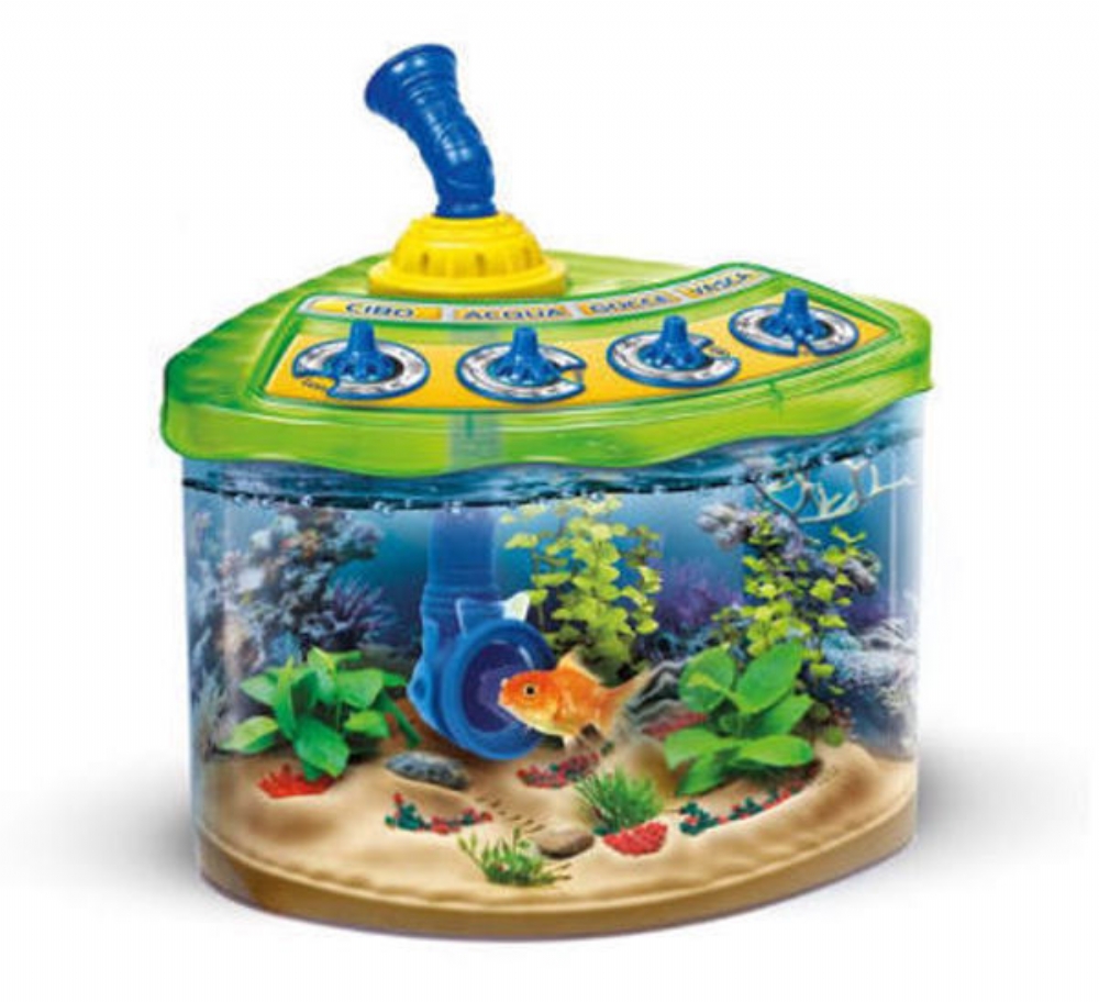 Contenuto della confezione: un fondale artificiale, tanti sassolini per decorarlo, un termometro per monitorare la temperatura dell’acqua e il biocondizionatore. Inoltre il sistema di svuotamento facilitato ed il retino per estrarre i pesci saranno utili per le operazioni di manutenzione e pulizia della vasca.