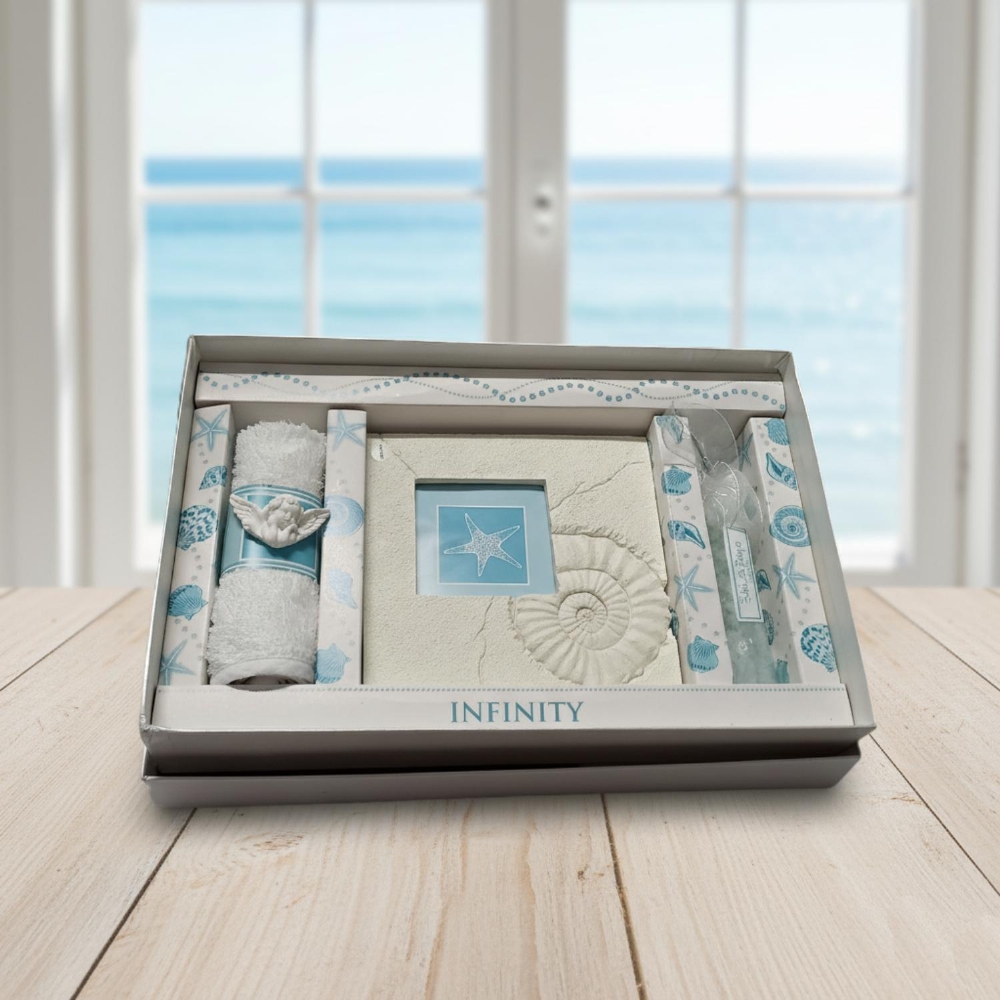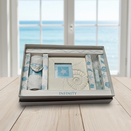 Confezione Regalo Completa: Il set è presentato in una scatola elegante con un design interno coordinato al tema mare. La confezione è già pronta per essere donata, ideale per un compleanno, un anniversario, o come una splendida e originale idea regalo che stupirà e rilasserà.