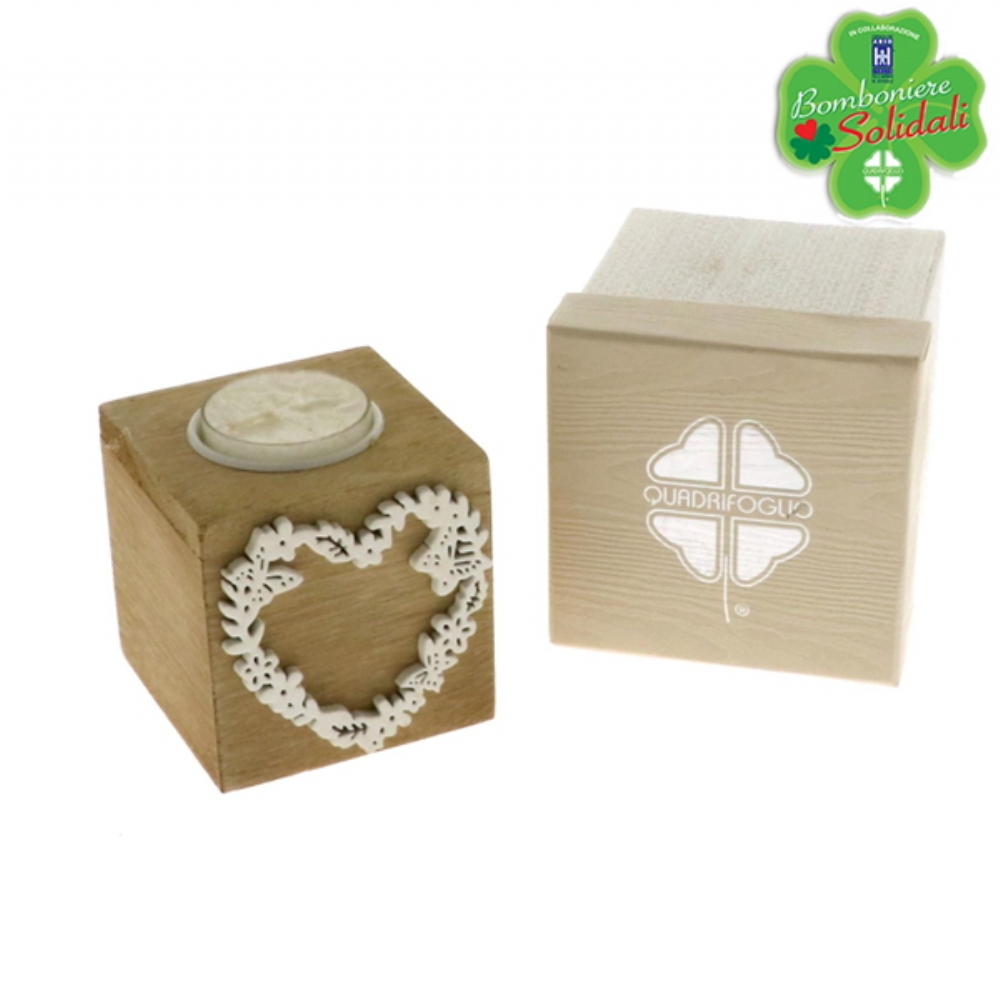 Porta candela Tea Light in legno, con decoro cuore.