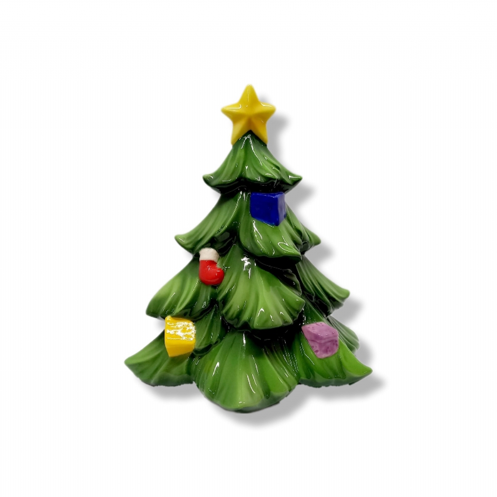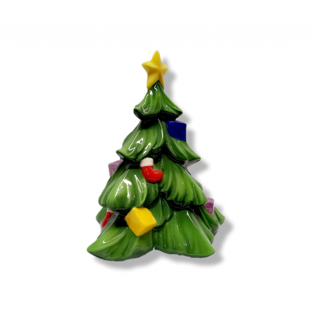 Realizzata in porcellana finissima, questa creazione è un vero gioiello di oggettistica d'arredo, ideale per chi desidera decorazioni natalizie che vanno oltre l'ordinario. Il design cattura la gioia del Natale: l'albero, rivestito di una brillante smaltatura verde, è impreziosito da dettagli in rilievo che simulano addobbi colorati, una calza e la stella dorata in cima. La qualità della porcellana conferisce una lucentezza e una percezione al tatto che solo un Prodotto Originale Franz può offrire.