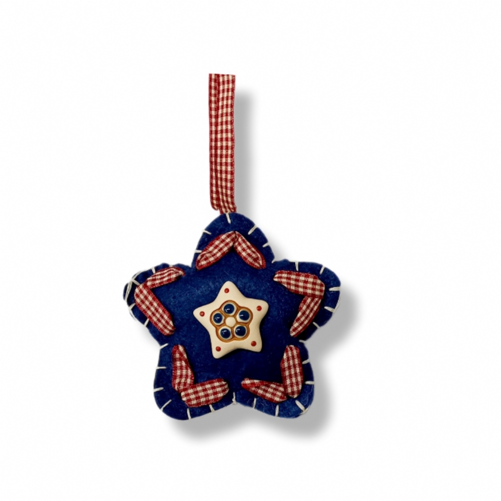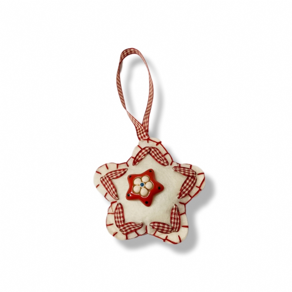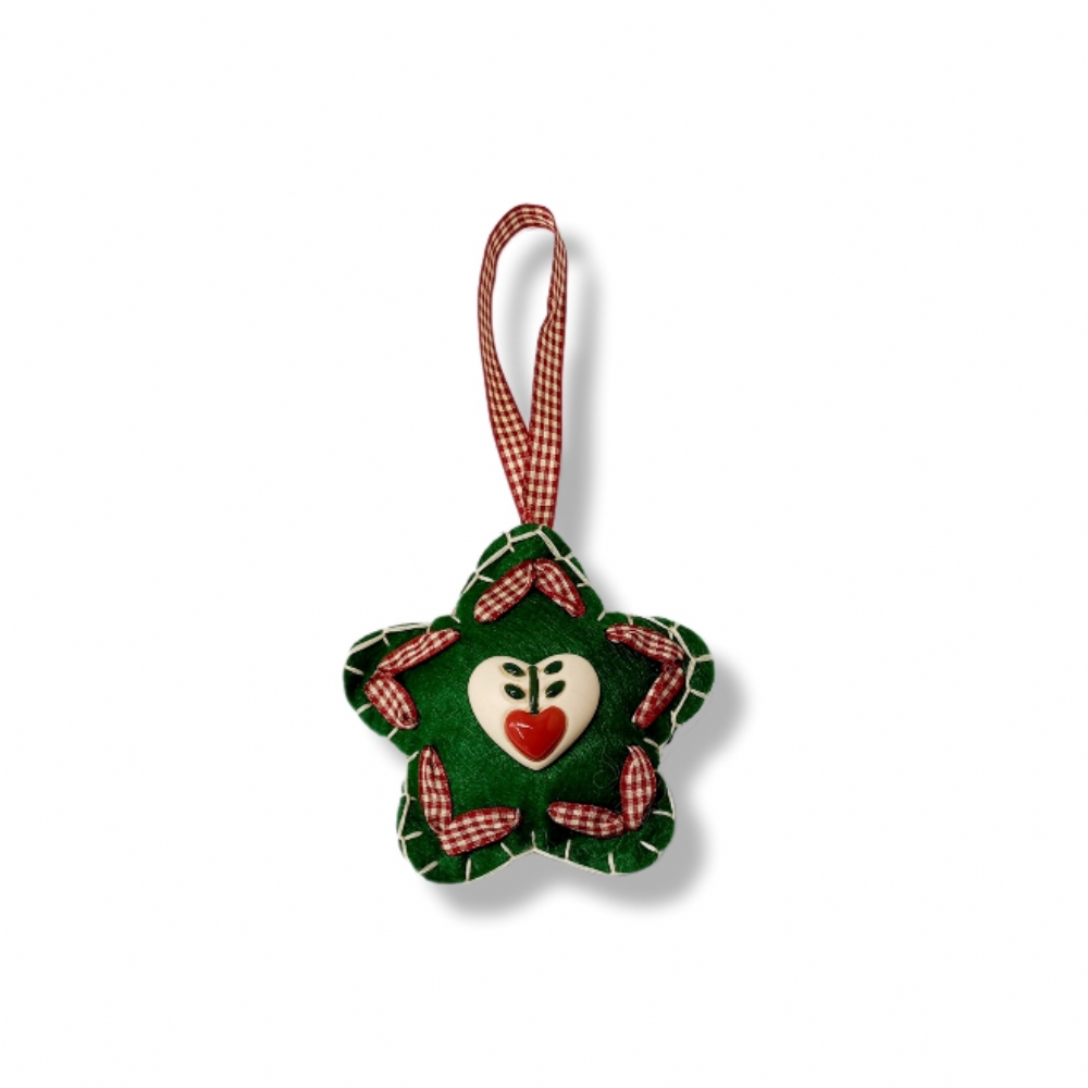Realizzate con morbido feltro di alta qualità in diverse e affascinanti colorazioni (blu profondo, bianco panna, verde bosco e rosso vivace), queste stelle sono impreziosite al centro da un delicato elemento in Kergres. Ogni stellina o cuoricino in Kergres è dipinto a mano, rendendo ogni pezzo unico e ricco di personalità. Il design curato e le finiture artigianali, con cuciture a vista e dettagli in tessuto tartan a quadretti, evocano un'atmosfera natalizia autentica e senza tempo.