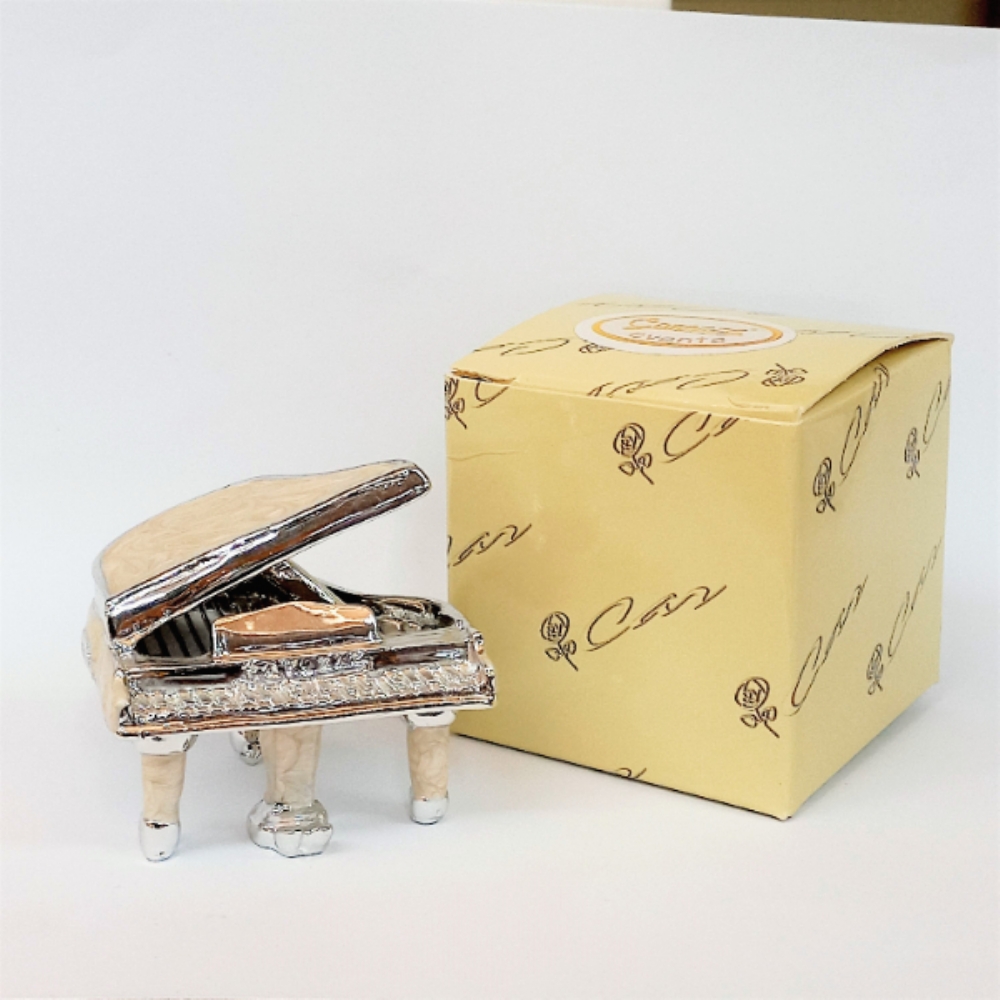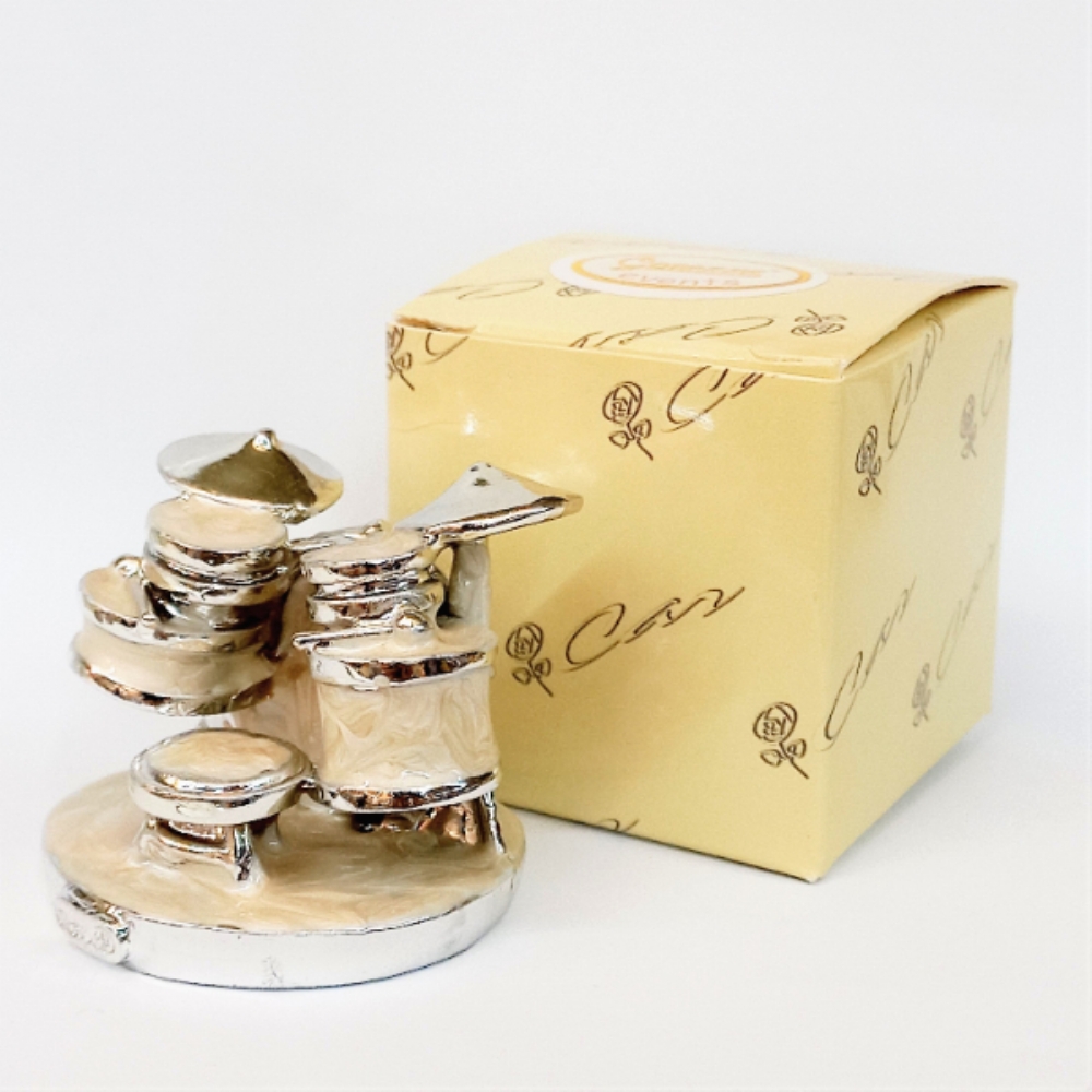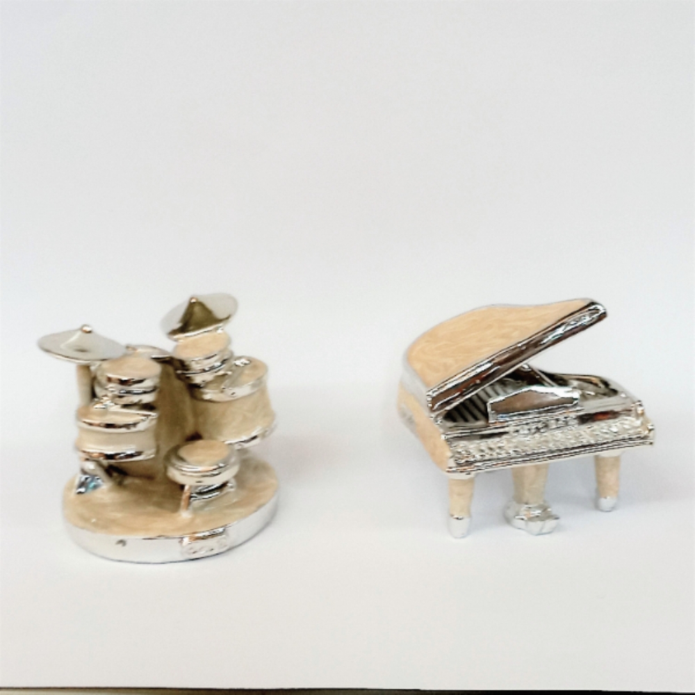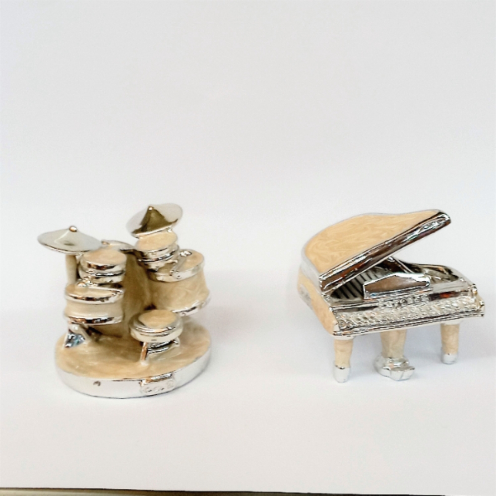 Strumenti musicali in resina argentata con dettagli madreperlati.