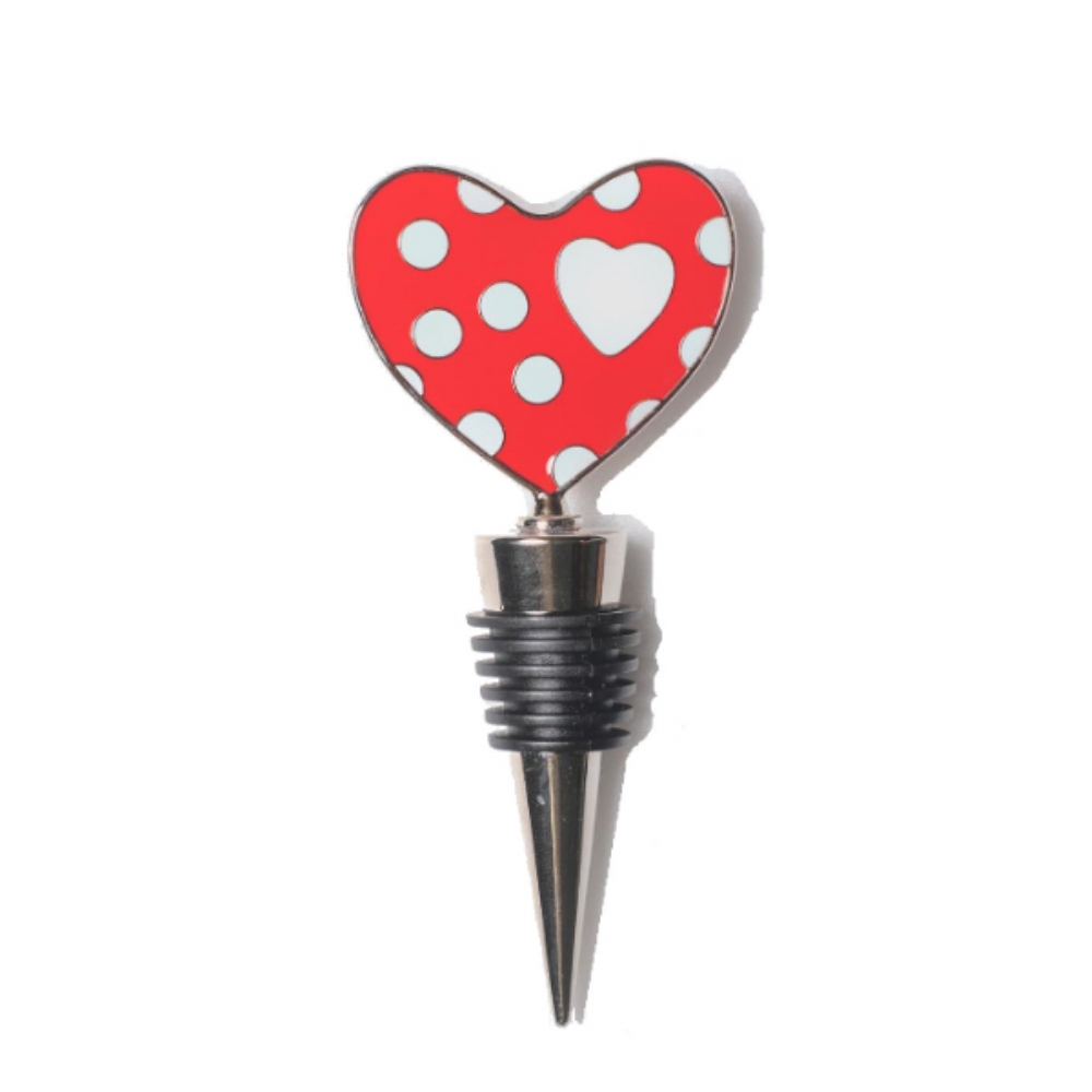 Tappo per bottiglia con inserto in metallo smaltato a forma di cuore.