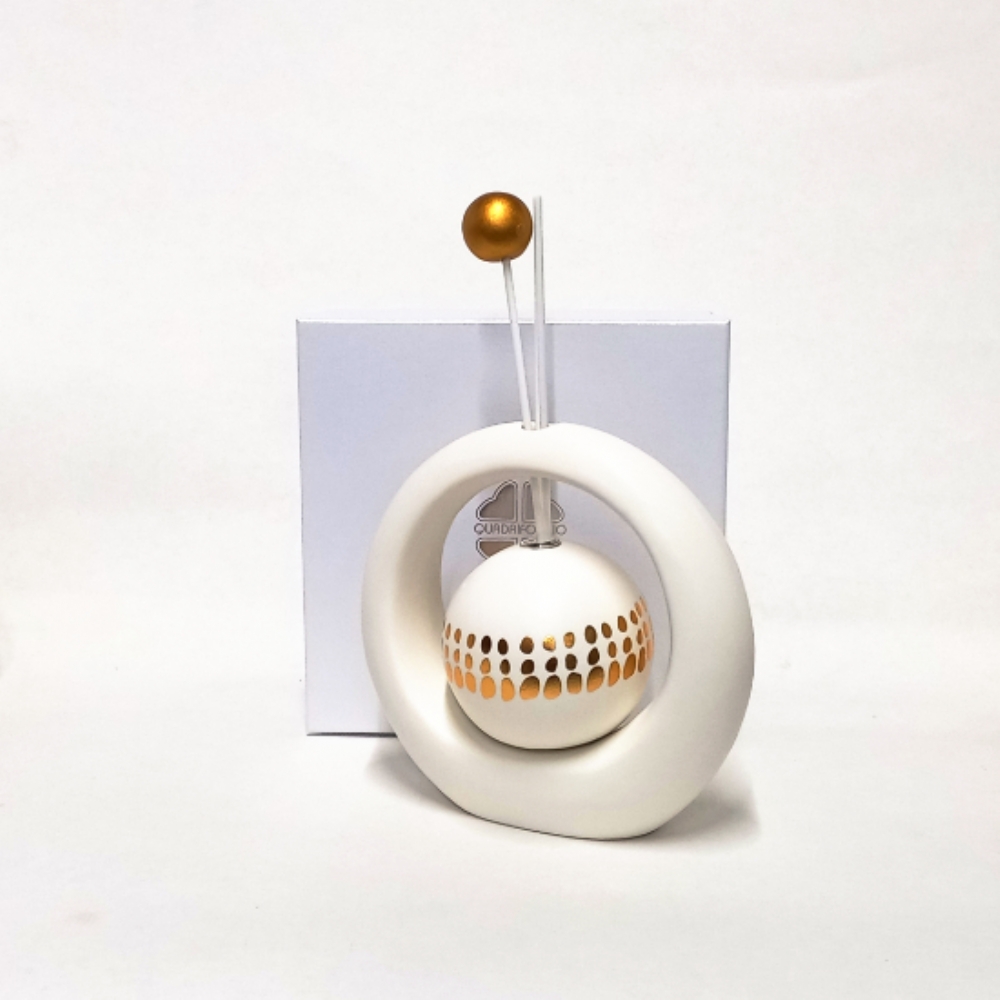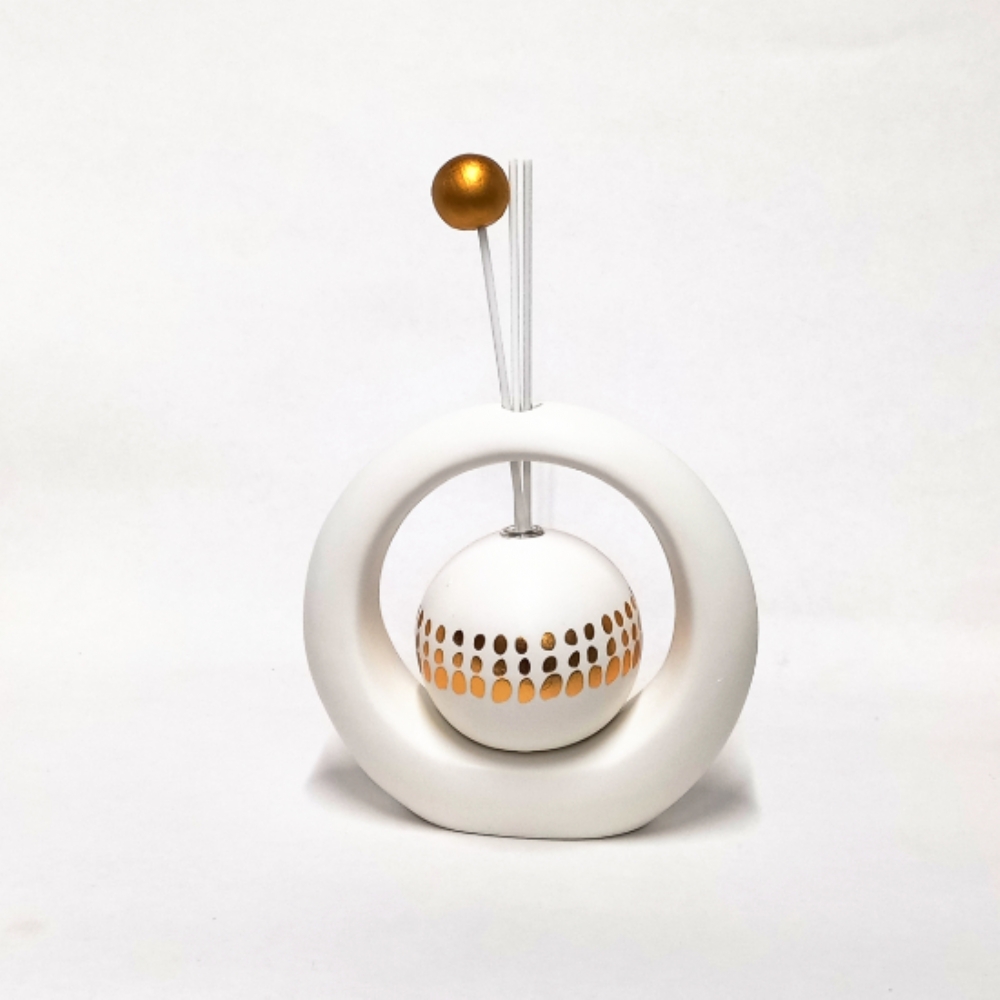 Uno dei pezzi più incantevoli di questa linea è il diffusore a cerchio, che misura 17 cm di larghezza e 16 cm di altezza.